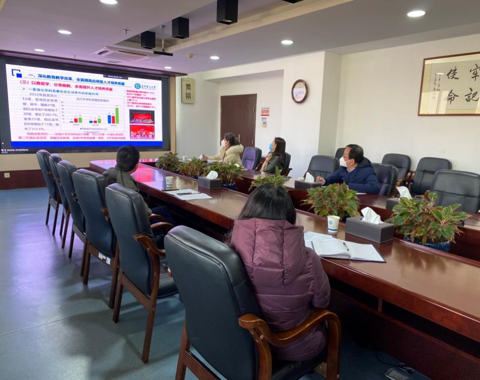 教务处副处长刘思强总结发言指出,2022年是不平凡的一年,各学院克服许多困难,在落实立德树人根本任务、建立“三全育人”工作格局,围绕“以本为本”,落实人才培养质量主体责任,建立健全本科教学质保体系等方面取得成效,为学校平稳有序发展奠定了坚实基础。2023年各学院要抓住发展机遇,进一步强化责任担当,开拓创新,以新思路、新要求去谋划高质量发展,在学校党委领导下,再创佳绩。