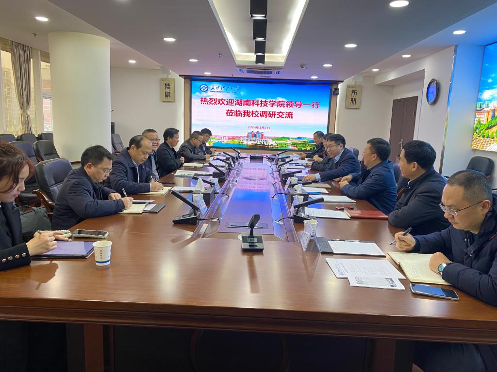 3月7日,湖南科技学院党委委员、副校长何福林等一行来LETOU官网调研,双方在云塘校区一办六会议室进行座谈。学校党委委员、副校长钱国平,教务处处长张军辉、信息化建设管理处处长王威、教务处副处长彭晖、高教改革与质量评价研究所副所长贺晖、资产管理与实验室建设管理处副处长唐中勇参加本次会议。会议由张军辉主持。