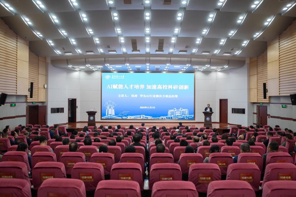 报告会上,张涛以《AI赋能人才培养,加速高校科研创新》为题作辅导报告。他详细介绍了人工智能的发展历史、发展趋势以及如何利用AI技术赋能高校建设等相关内容。他指出,随着大模型技术的快速发展,人工智能已经逐渐走深向实,为各个领域带来了革命性的变革。特别是在教育领域,人工智能技术不仅可以提高教学效率和质量,还能够为高校科研创新提供强大的算力支持和智能化解决方案。张涛重点介绍了华为在人工智能技术方面的最新成果及其在高校的应用实践。他强调,华为一直致力于将人工智能技术应用于教育领域,通过构建AI教学实训平台、提供算力资源集群等举措,为高校人才培养和科研课题提供了充沛的算力资源保障。同时,华为还积极与高校开展产学研深度合作,共同构建生态圈,推动人工智能技术在高校的创新应用。