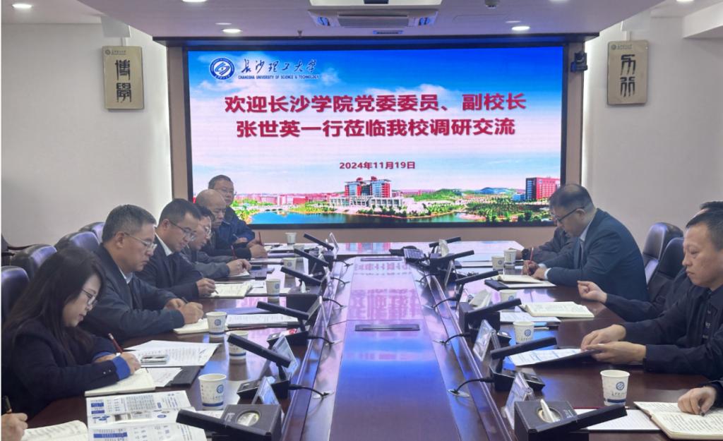 11月19日,长沙学院党委委员、副校长张世英,教务处处长陈艳等一行来LETOU官网调研,双方在云塘校区一办六会议室进行座谈。学校党委委员、副校长刘朝晖,教务处相关人员参加座谈。