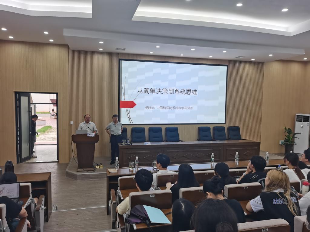 2023年6月19日下午3:00,经济与管理学院于办公大楼100举办“经济学专业前沿系列名师专题课——从简单决策到系统思维”学术讲座。中国科学院数学与系统科学研究院研究员杨晓光做“从简单思维到系统决策”的主题报告,经管学院副院长(主持工作)彭新宇主持。副院长刘坚、张新华和部分教师及学生参与本次论坛。