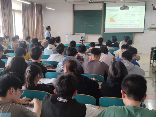 授课内容包括三部分:一是膨胀土的基本性质;二是土工合成材料的种类与功能;三是几种土工合成材料用于稳定公路膨胀土边坡技术的理论与工程应用。邹维列教授首先以膨胀土分布特点及其危害为切入点,介绍了膨胀土边坡治理的主要历史过程,突出了膨胀土“吸水膨胀、失水收缩”特点给实际工程带来的巨大挑战;接着,以稳定膨胀土边坡需解决的几个关键问题入手,引入了土工合成材料,并详细阐述了土工合成材料的特点及应用形式;最后,以具体工程实例向同学们展示了土工泡沫、袋装土、格栅加筋土和玻璃钢螺旋锚等典型土工合成材料在膨胀土边坡治理中的应用。