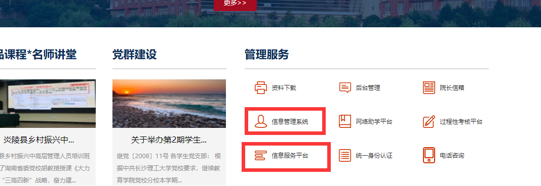 信息系统的访问请通过我院的主页(继续教育学院 (csust.edu.cn))下部的链接进行访问。