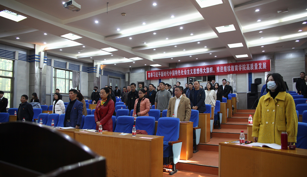 大会的主题是:高举习近平新时代中国特色社会主义思想伟大旗帜,全面落实党的建设新要求,落实立德树人根本任务,深入贯彻落实学校第四次党代会精神,立足学校发展大局,围绕学院“十四五”建设与发展目标,团结带领全院师生员工,统一思想,振奋精神,深化改革,勇于担当,团结奋进,全面推进继续教育事业高质量发展,为学校建成百强大学做出新的更大贡献。