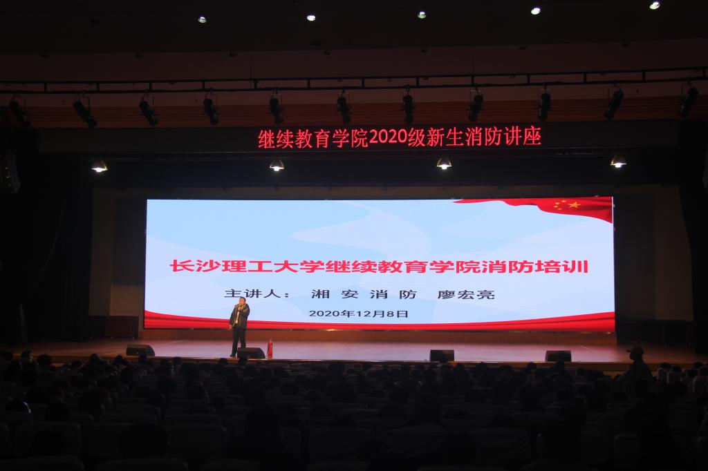 12月8日下午,继教学院在金盆岭校区五教大礼堂举办消防安全知识讲座及逃生演练,全体2020级千余名新生及团学干部聆听了讲座。