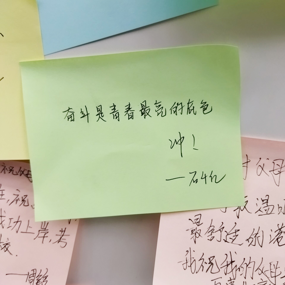 进入14号教学楼,一面贴满彩色纸条的墙引人注目。 “奋斗是青春最亮丽的底色”“祝愿每一位同学都能学有所成”“感恩有你,用青丝护我成长;我愿永远伴你,即使你白了发。”……同学们积极参与本次活动,用字里行间的只言片语,流露温情、表达感激。除了通过文字表达情感,活动还设置了“祝福箱”,参与的同学们可随机从祝福箱中抽取一份来自陌生人的祝愿。