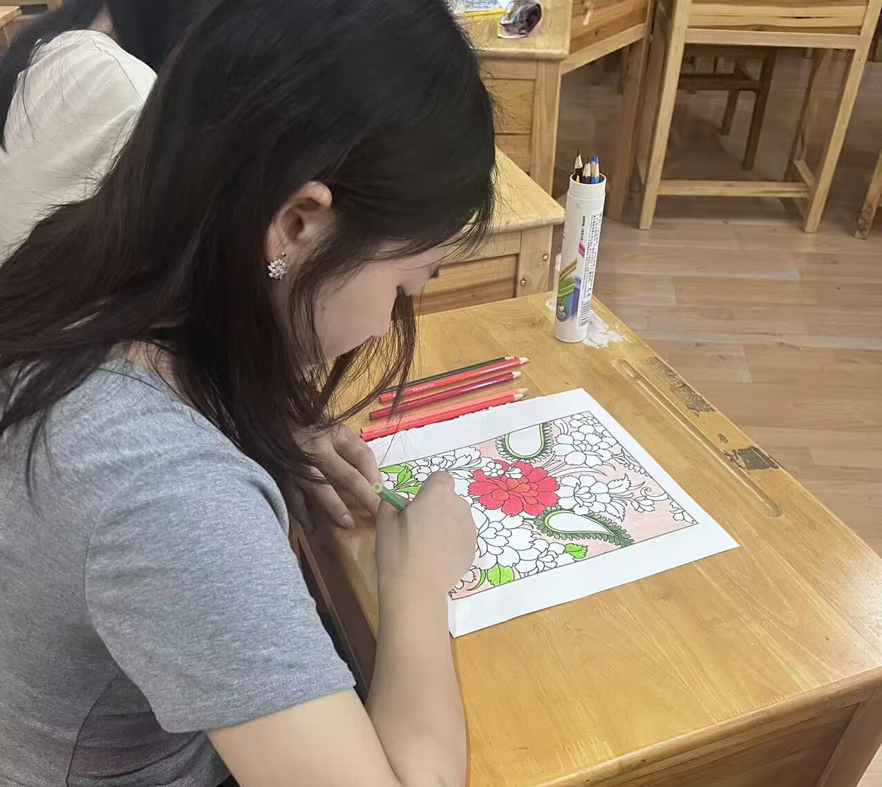 活动现场,大家都认真听讲和积极主动参与绘画体验,通过冥想带入专注当下的状态,大家抛开生活中的纷杂的压力和想法,集中到当下,享受当下的内心宁静。一张张曼陀罗绘画纸,将自己内心的感受,予以它们一定的意义。随着绘画的深入,曼陀罗将那扇记忆的大门打开,脑海中难忘的故事,亦或是难忘的人,涌入笔尖,跃然纸上。与自己对话,与曼陀罗对话,开出心间的花。在最后分享环节,大家纷纷主动介绍自己的作品,分享绘画感受和当下心情故事。