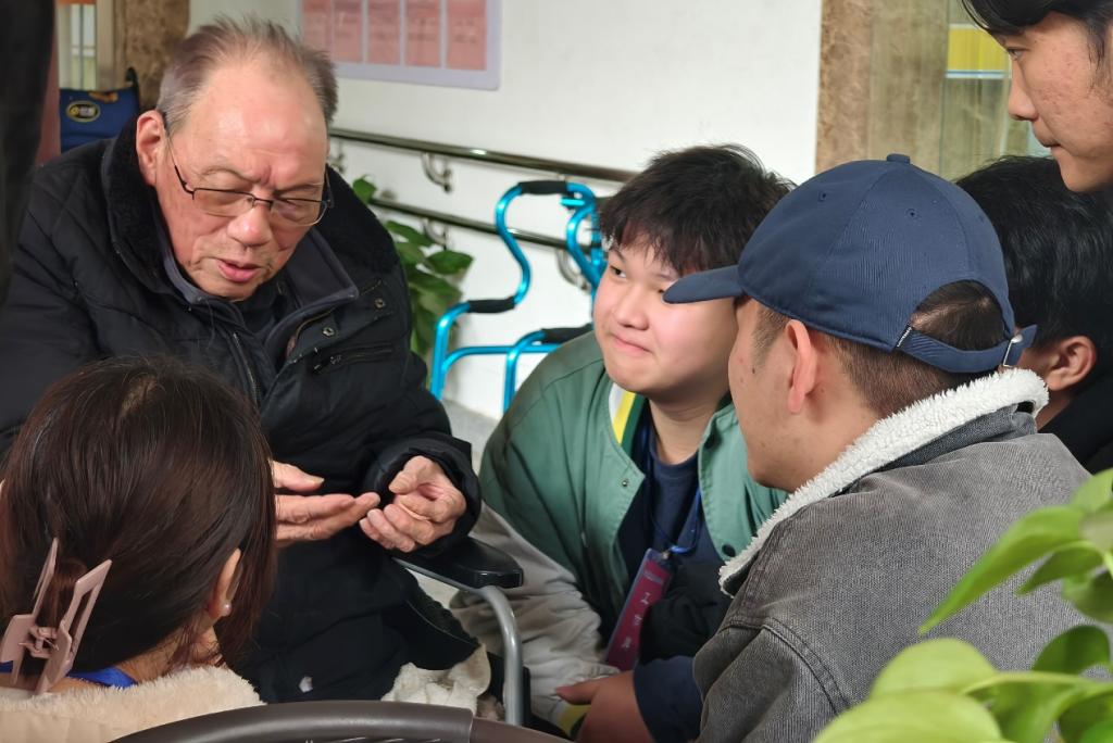 在交流互动环节,志愿者们与老人们围坐在一起,亲切地唠起家常。老人们讲述着过去的故事,志愿者们认真聆听,不时发出会心的笑声和感慨。一位抗战老人回忆起年轻时的奋斗历程,讲述着那段战火纷飞的岁月,他们英勇无畏、保家卫国的事迹让志愿者们深受触动。这些老兵用热血和生命捍卫了国家尊严,他们的精神是中华民族的宝贵财富。交流结束后,一位抗战老兵欣然提笔,为同学们题词:“雄心壮志,奋发图强”,表达了对抗战精神和雷锋精神的传承期望,希望年轻一代能够铭记历史,勇担责任。