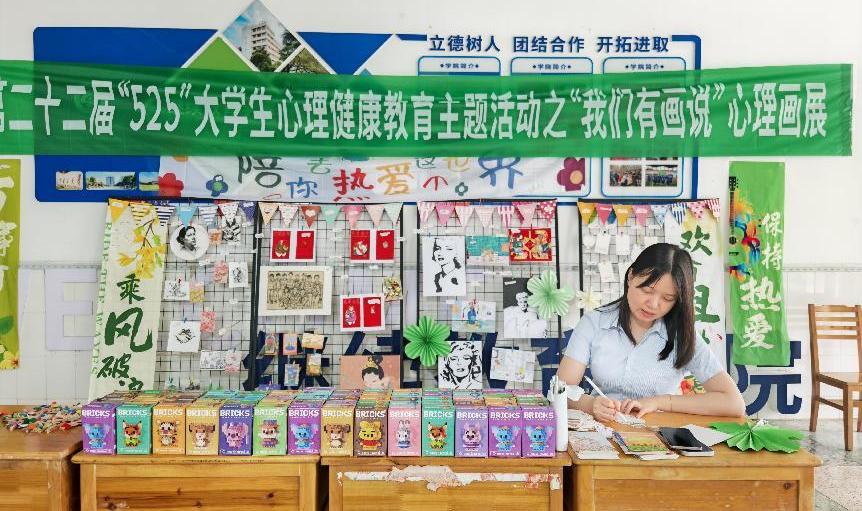5月23日,由继续教育学院主办、思文教学部承办的“525·我们有画说”大学生心理健康主题展览在14号教学楼一楼大厅举行。活动通过艺术创作帮助学生抒发情感、调节心理状态,吸引了众多师生参与。