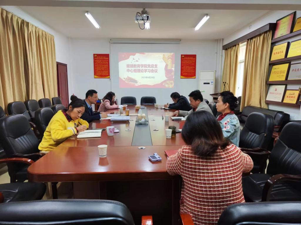4月28日上午,继教学院召开了党总支会议和理论学习中心组专题学习,何纯芳书记主持,学院党总支委员参加会议。
