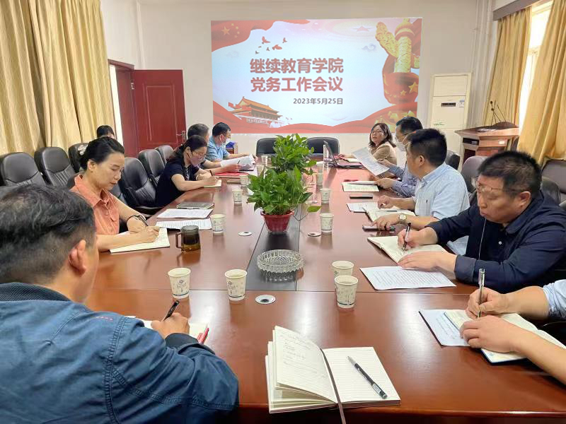 为了更好地学习贯彻落实习近平新时代中国特色社会主义思想主题教育,坚持以学增智,把理论学习和提升实践能力有机统一起来,5月25日上午,继教学院召开了专题党务工作会议。院总支书记何纯芳主持,谢士成副书记、组织员、各支部书记和支部委员参加。