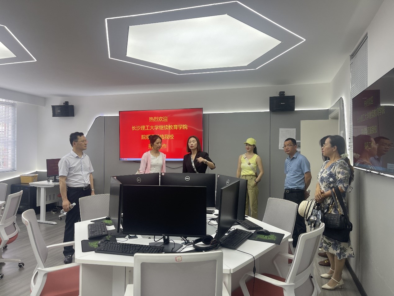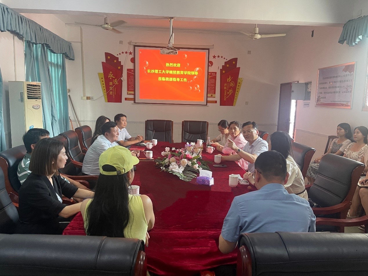 随后,何书记一行走访了湘潭大学继续教育学院湘训教学部、湘潭北大青鸟开大校区,与教学点相关负责人围绕继续教育合作办学的情况、党支部建设情况以及合作办学中遇到问题和困难进行了深入的交流。