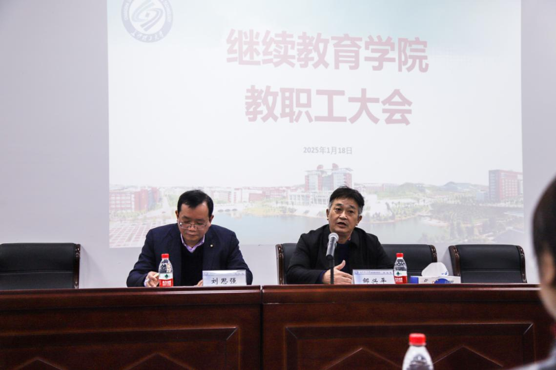 2025年1月18日上午,继续教育学院全体教职工大会在14教118会议室召开。大会由学院党委书记刘思强主持,全院正式教职工参加。