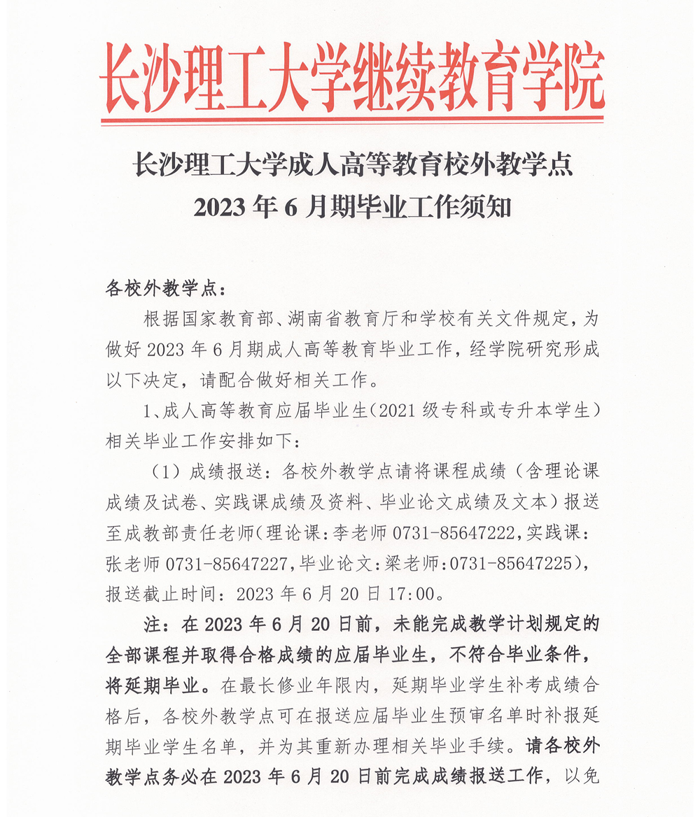 LETOU体育平台成人高等教育校外教学点2023年6月期毕业工作须知