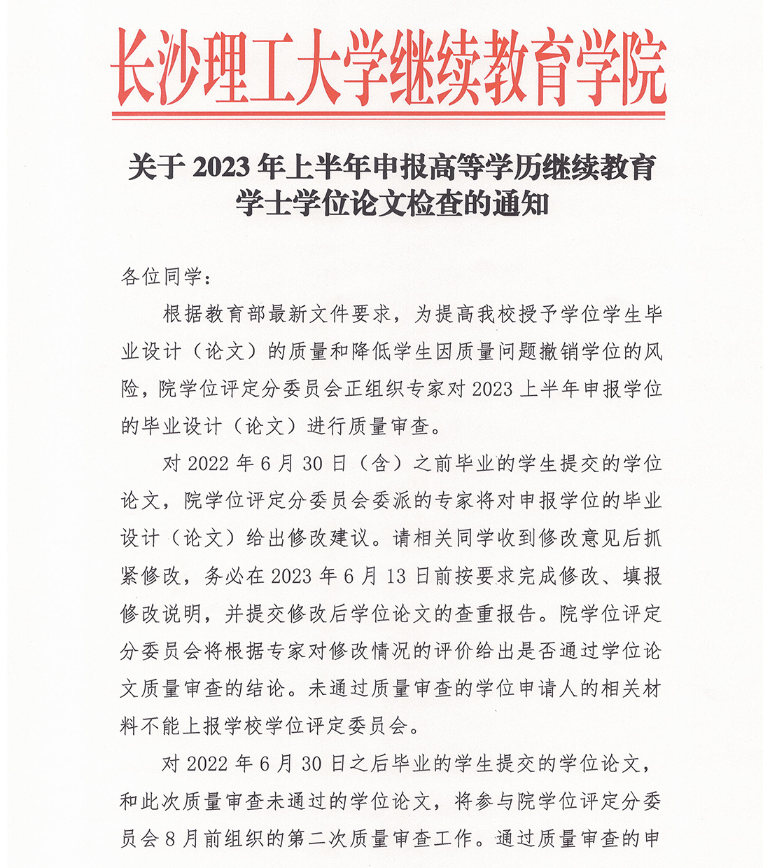 关于2023年上半年申报高等学历继续教育学士学位论文检查的通知