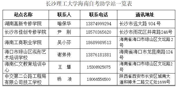 学校是较早参与高等教育自学考试工作的普通高等院校之一,目前是湖南、海南、天津、广西四省高等教育自学考试主考院校。学校从1994年开始举办自学考试社会助学活动,二十多年来,累计助学总人数17万余人,为地方经济建设和社会发展,特别为交通、电力、水利等行业培养了大量急需的应用型人才。学校还是高等教育自学考试“全国示范学习服务中心”,“全国高等教育自学考试先进集体”,湖南省“优秀助学机构”,长沙市“优秀考点”。