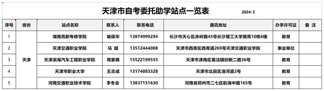 天津市自考招生助学站点一览表