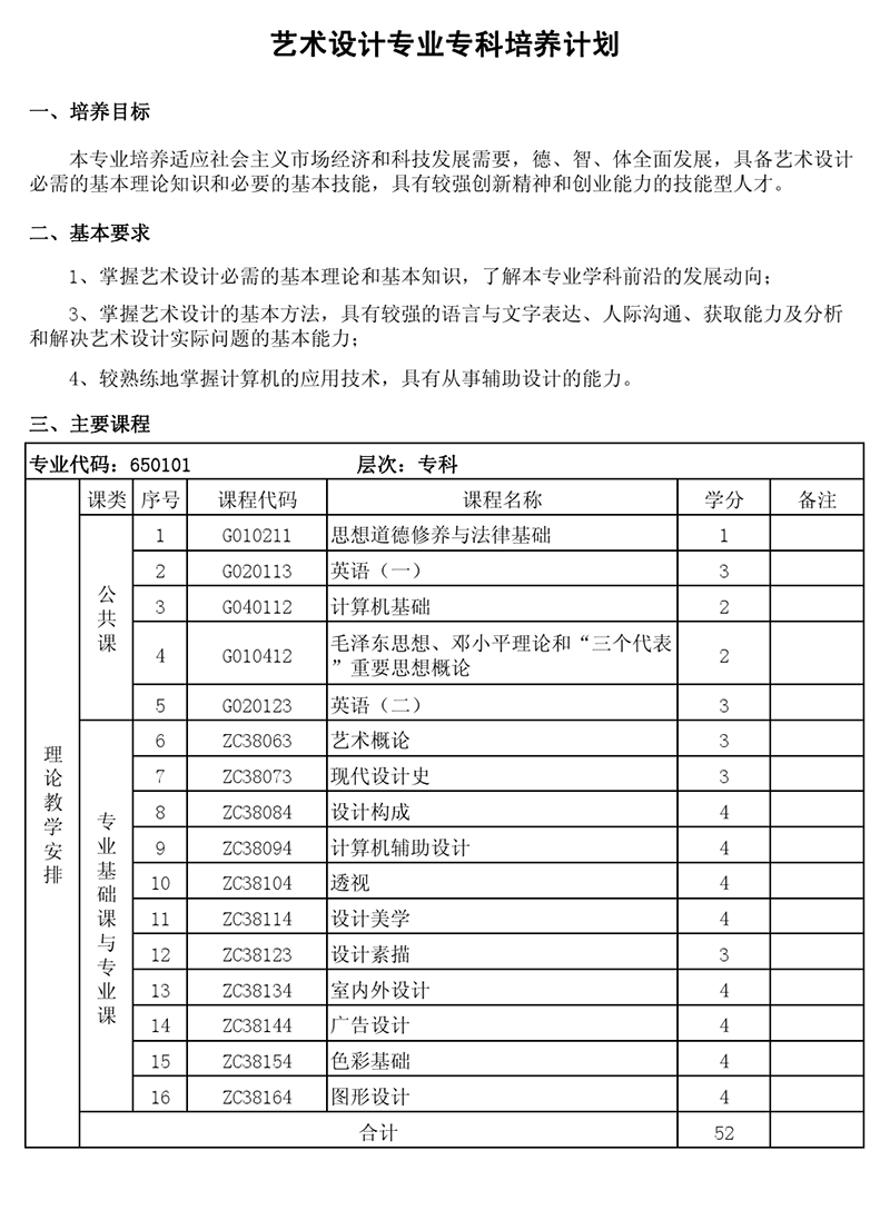 本科培养计划-专业代码:130502 视觉传达设计专业