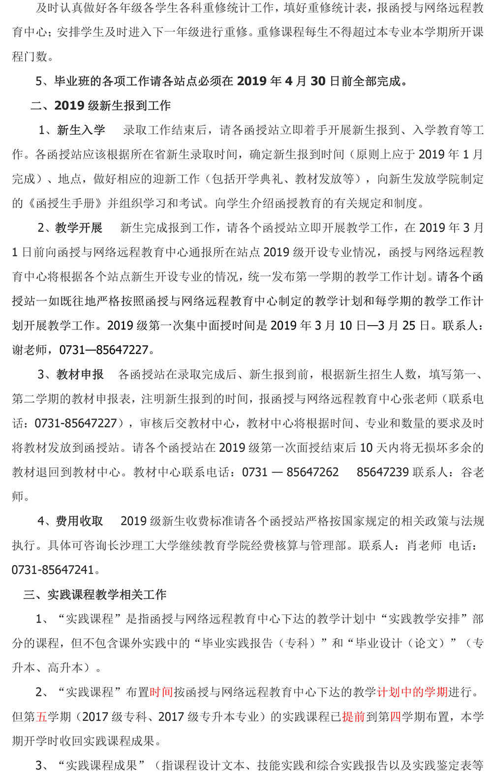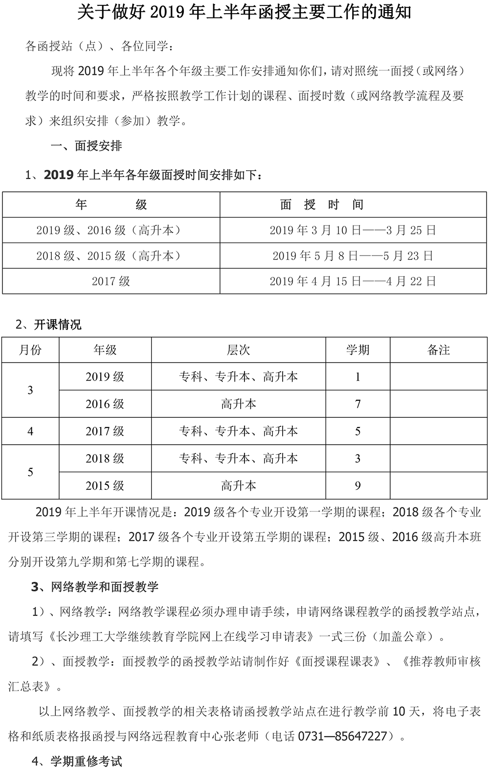 关于做好2019年上半年函授主要工作的通知