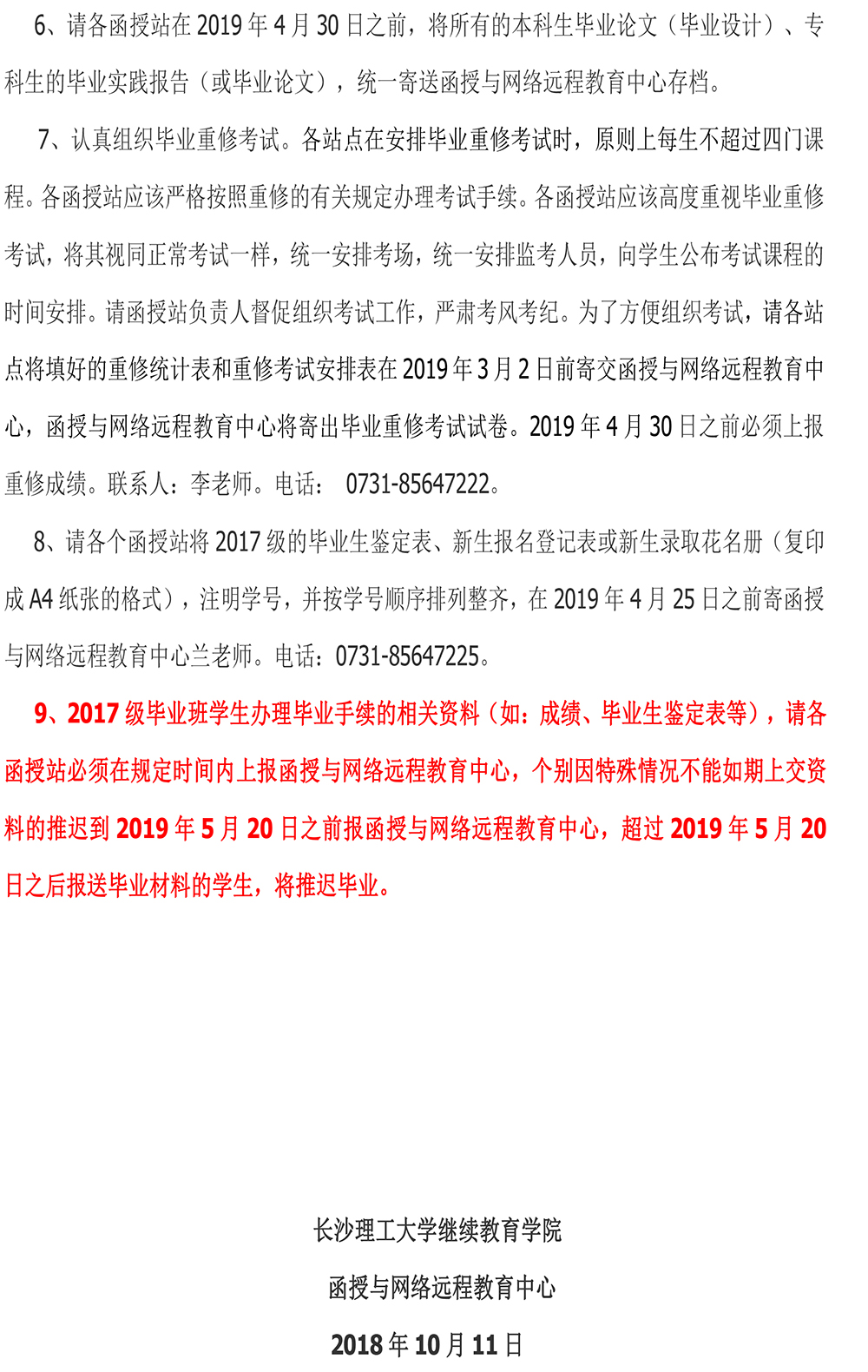 关于做好2019年下半年函授主要工作的通知