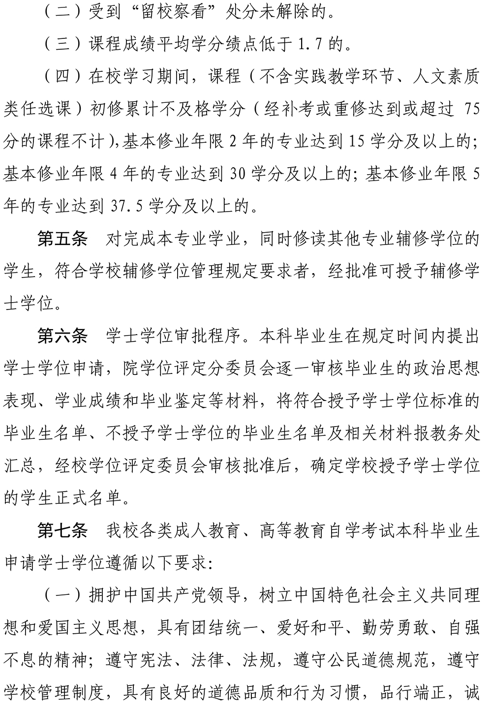 关于印发修订后的《LETOU体育平台学士学位授予工作细则》的通知