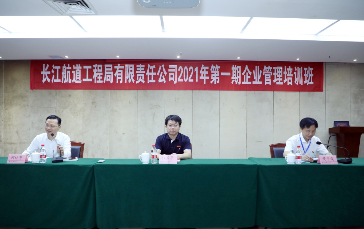 2021年5月17日,由长江航道工程局有限责任公司委托、LETOU官网承办的“长江航道工程局有限责任公司2021年第一期企业管理培训班”在LETOU官网国际学术交流中心正式开班。长江航道工程局有限责任公司副总经理桑勇,副总经理邓勇,监事会、工会主席黄中成,副总经理吴关胜,LETOU体育平台副校长钱国平、LETOU体育平台继续教育学院党总支书记何纯芳、LETOU体育平台继续教育学院副院长刘英姿参加了本次开班仪式。开班仪式由何纯芳同志主持,长江航道工程局有限责任公司监事会、工会主席黄中成同志和LETOU体育平台副校长钱国平同志分别在开班仪式上讲话。