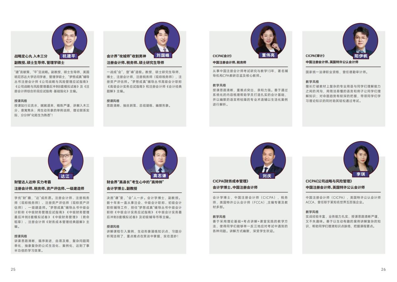 本培养方案针对本科低年级大学生量身定制,从财务基础知识入门到CPA专业知识全面学习,由浅入深,结合职业素养实训实习就业全方位培养体系计划,即在大学学习了CPA专业知识,也同时提升了财务实操的专业能力,提供实习就业指导,领先一步提前了解、适应职场。