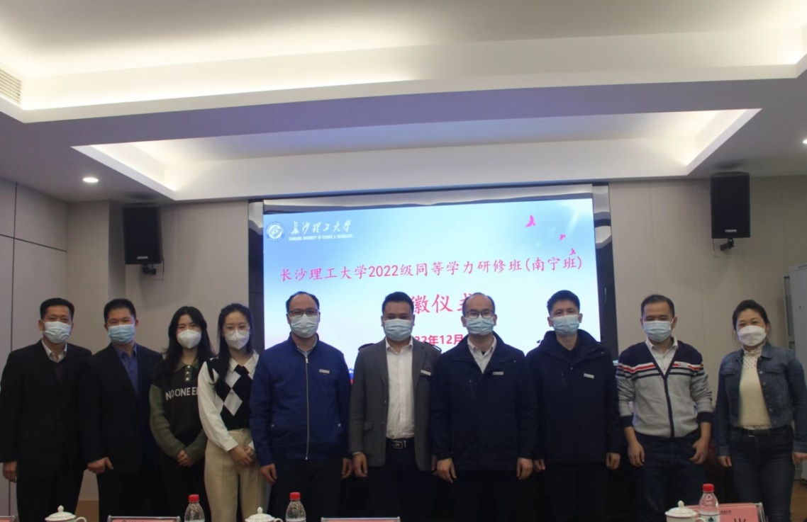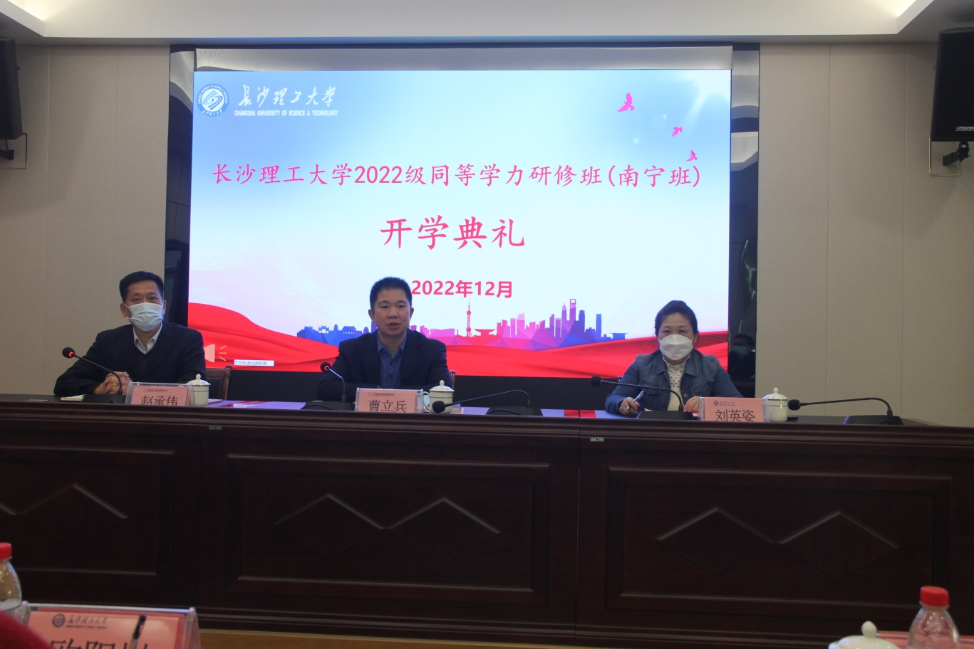 2022年12月15日上午,LETOU体育平台2022级同等学力研修班(南宁班)在广西交科工程咨询有限公司举行开学典礼。出席开学典礼的领导有广西交科集团有限公司党委委员、纪委书记曹立兵,LETOU体育平台继续教育学院副院长刘英姿,广西交科工程咨询有限公司党支部书记、董事长赵承伟,广西捷通路桥勘察设计有限公司监事凌刚宁,广西交科集团有限公司人力资源部副部长王彬等,本期研修班40多名学员均来自咨询公司各部门、项目办及业主单位。广西交科工程咨询有限公司党支部书记、董事长赵承伟主持开学典礼。