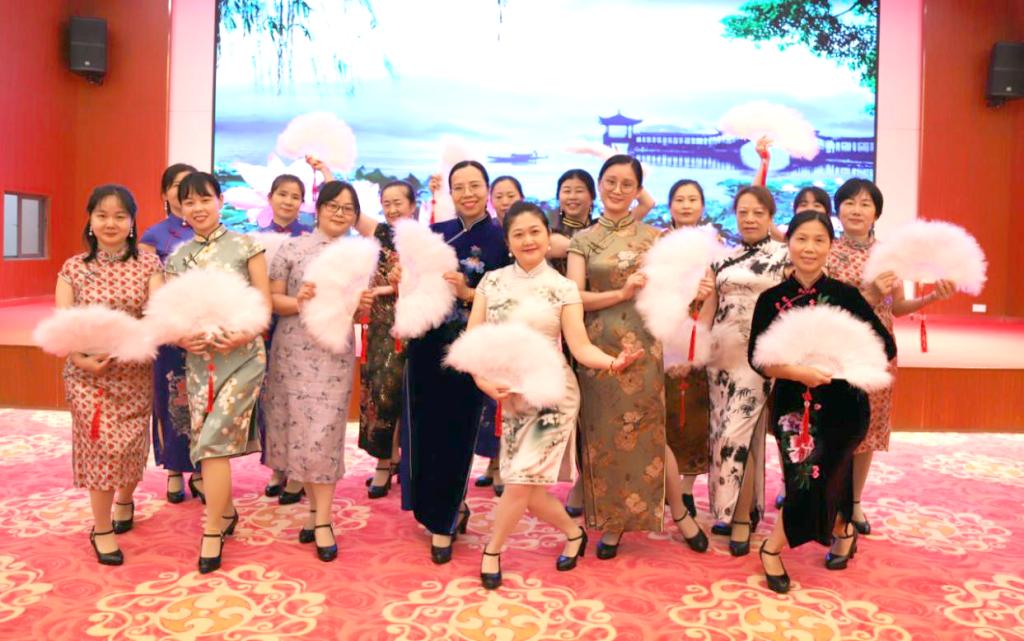 随后,教职工们在春华山培训基地大礼堂观看了女职工旗袍秀,开展了歌唱表演和交谊舞等丰富多彩的活动。活动在大家欢声笑语中圆满结束。