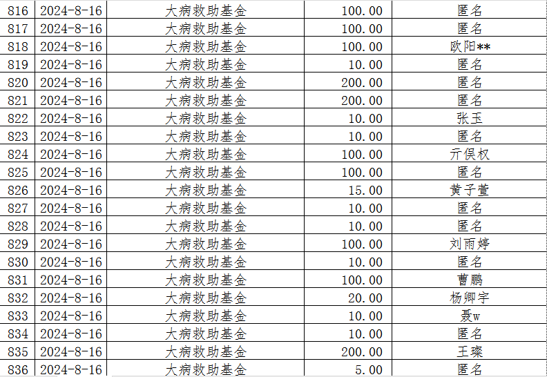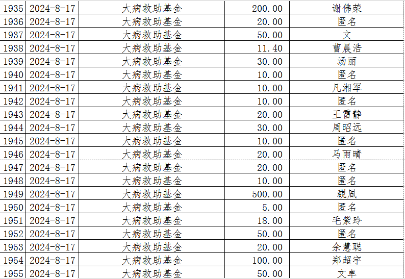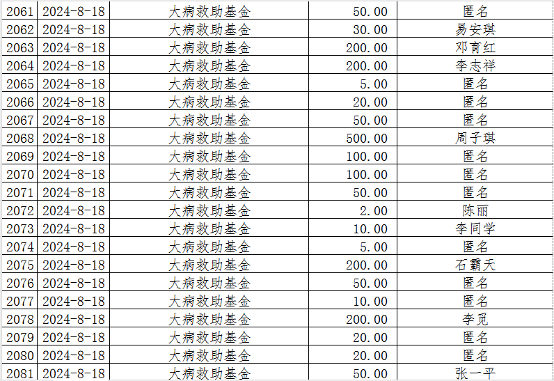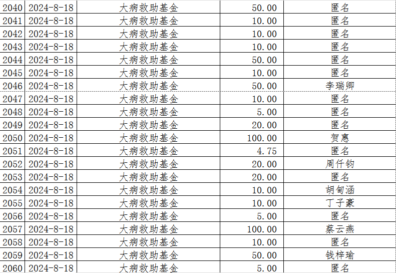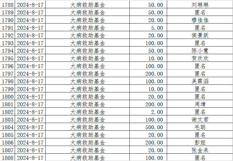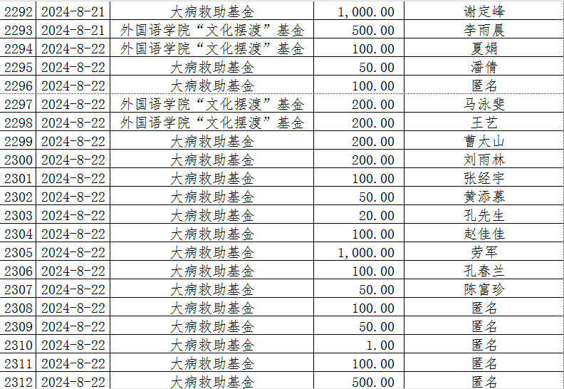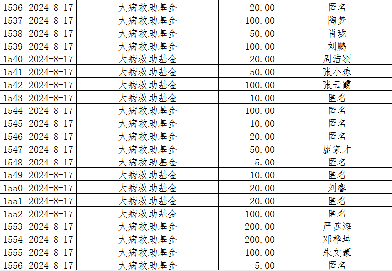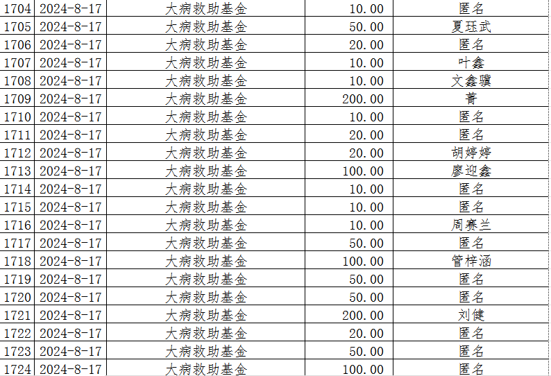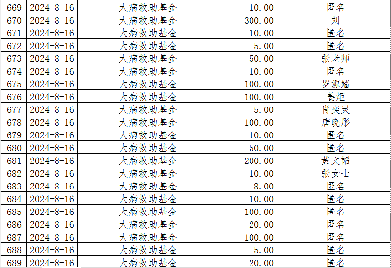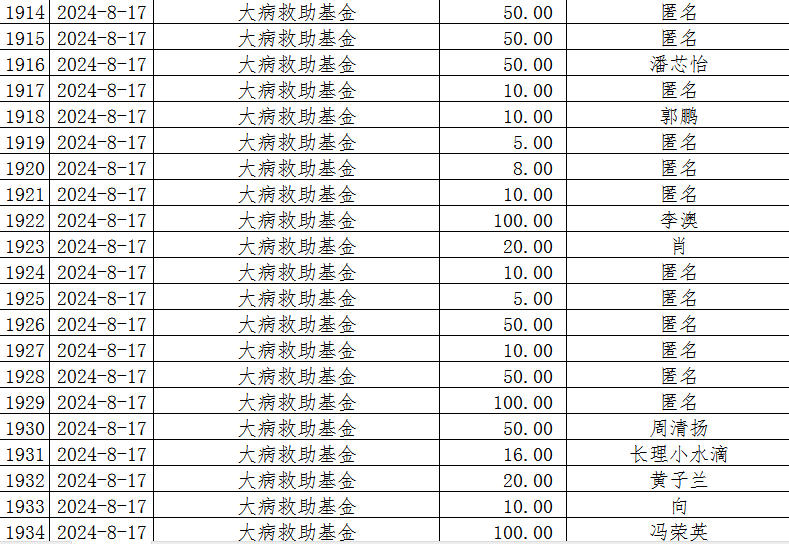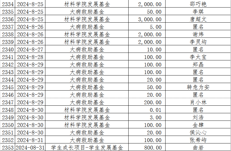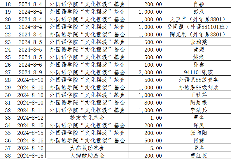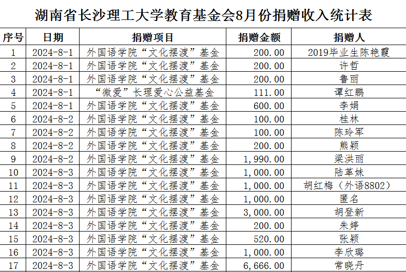 湖南省LETOU体育平台教育基金会2024年8月捐赠收入表