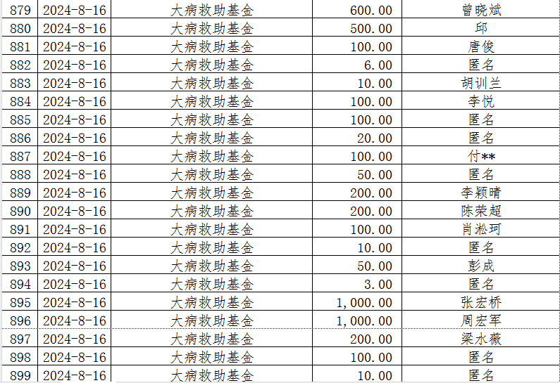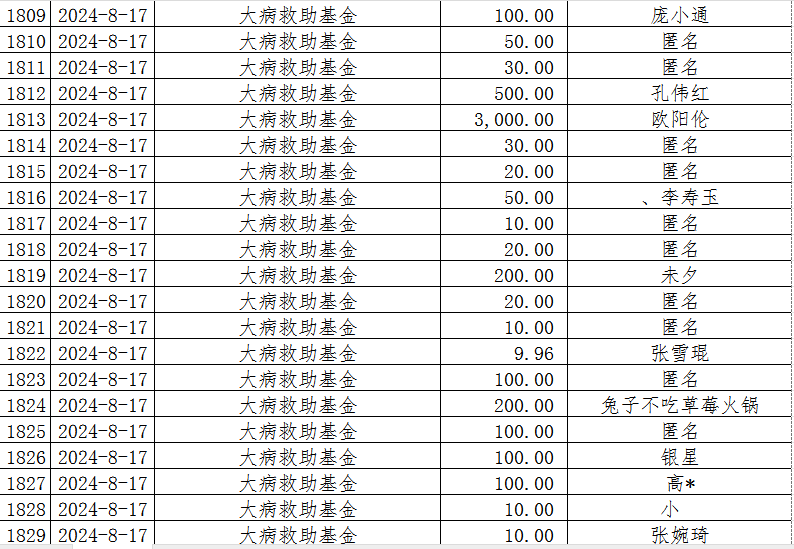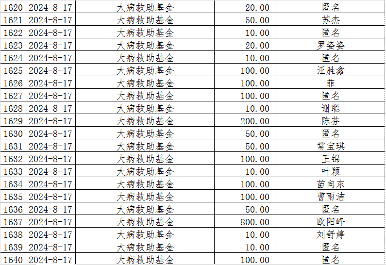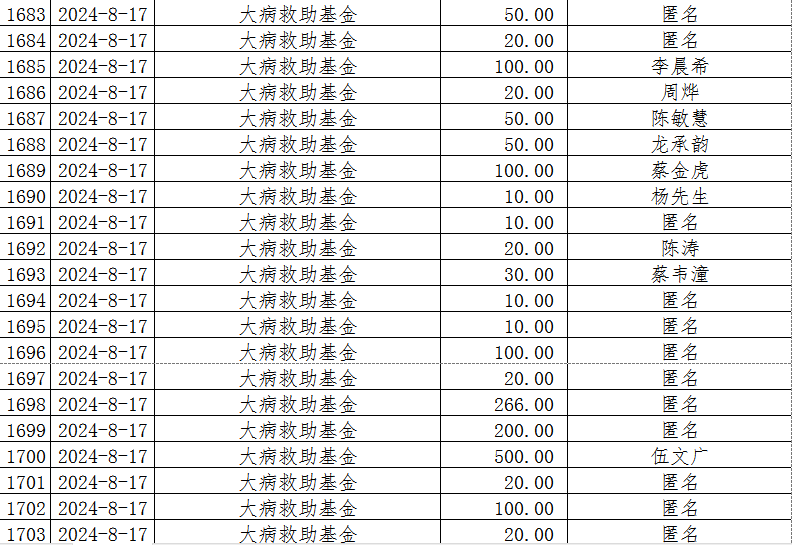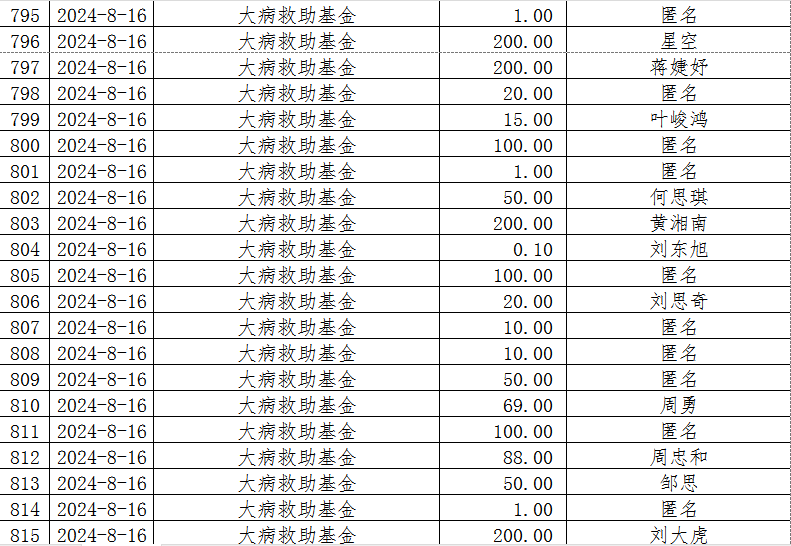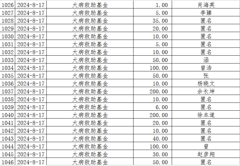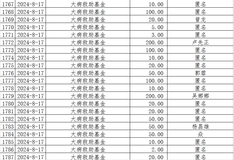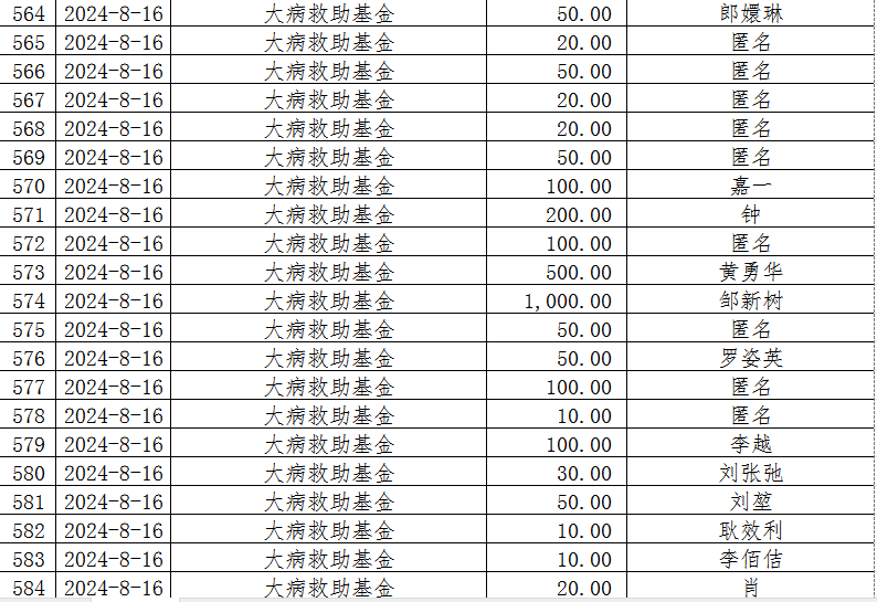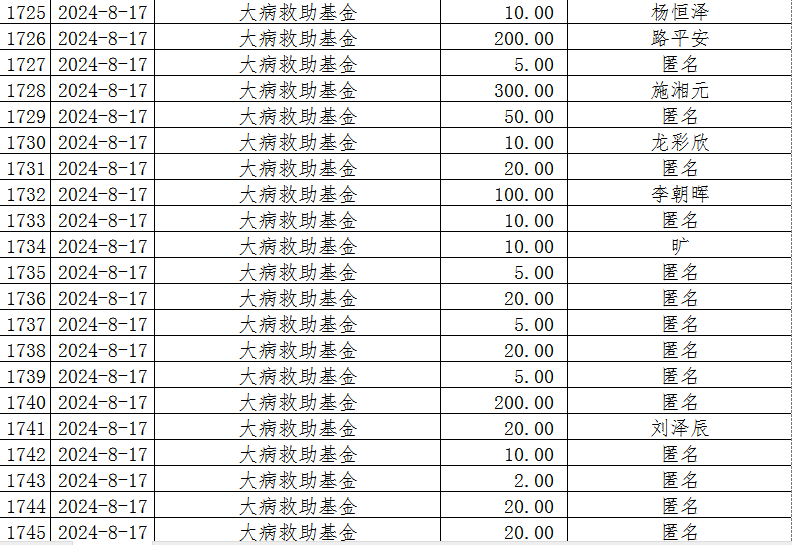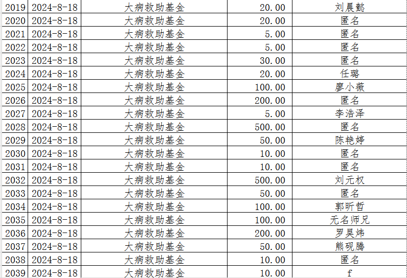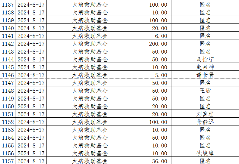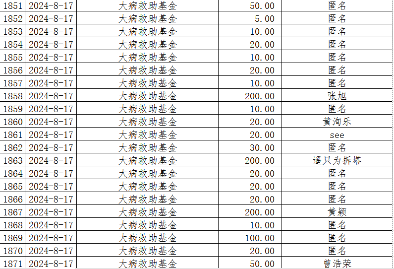 湖南省LETOU体育平台教育基金会2024年8月捐赠收入表