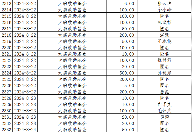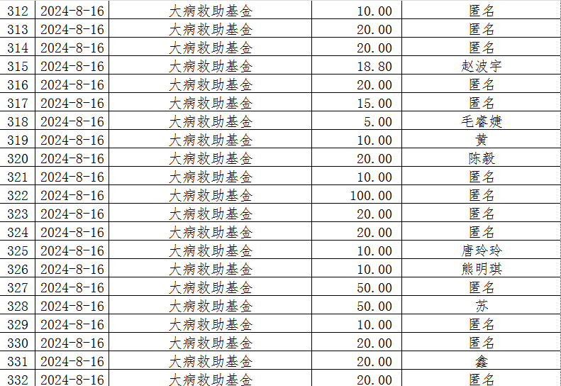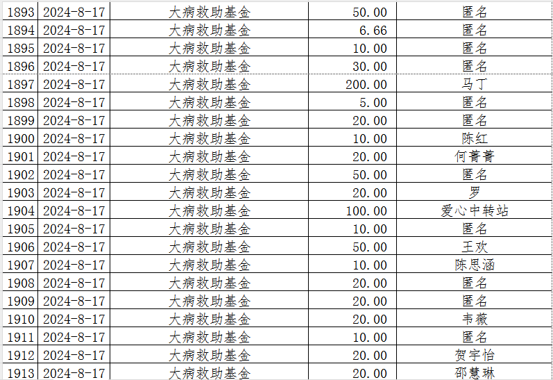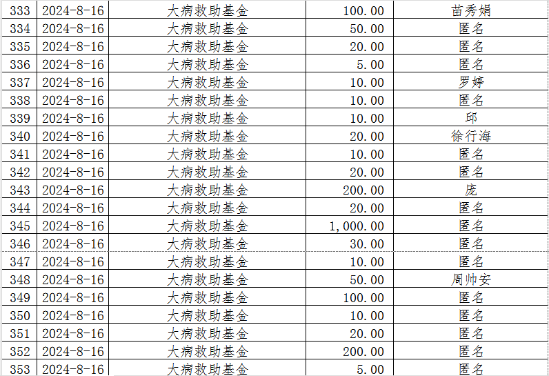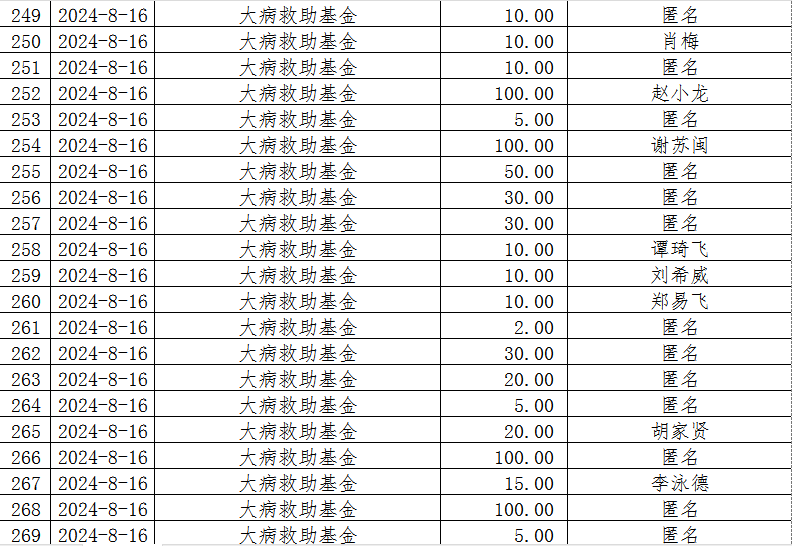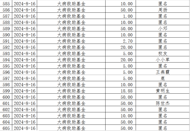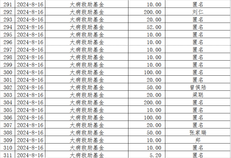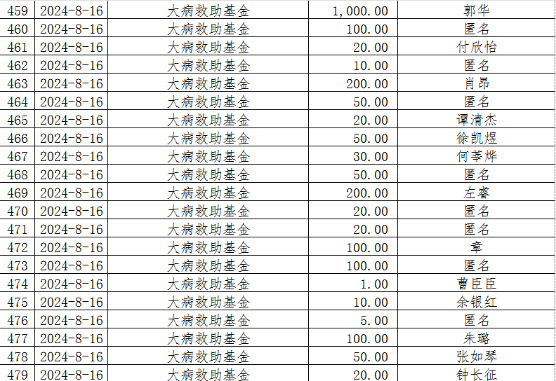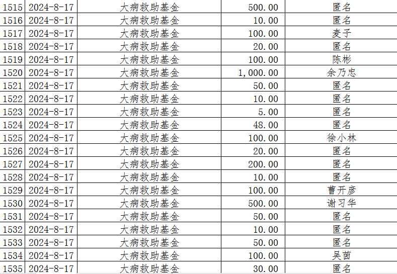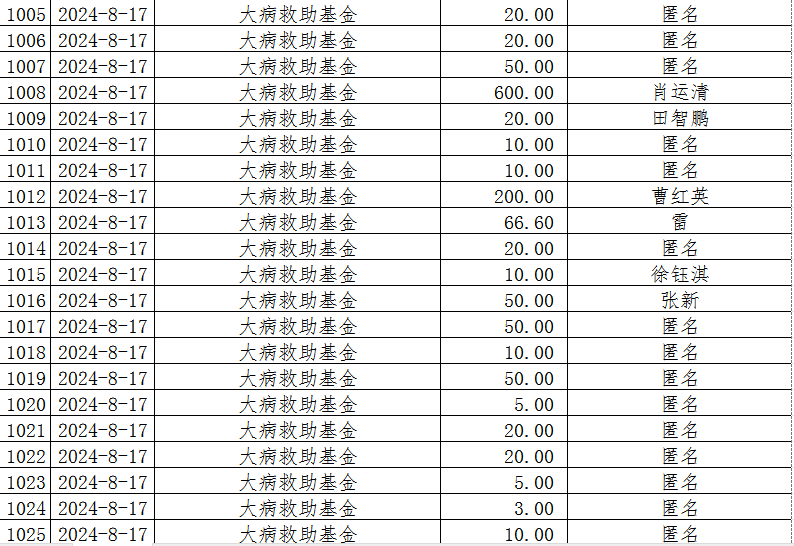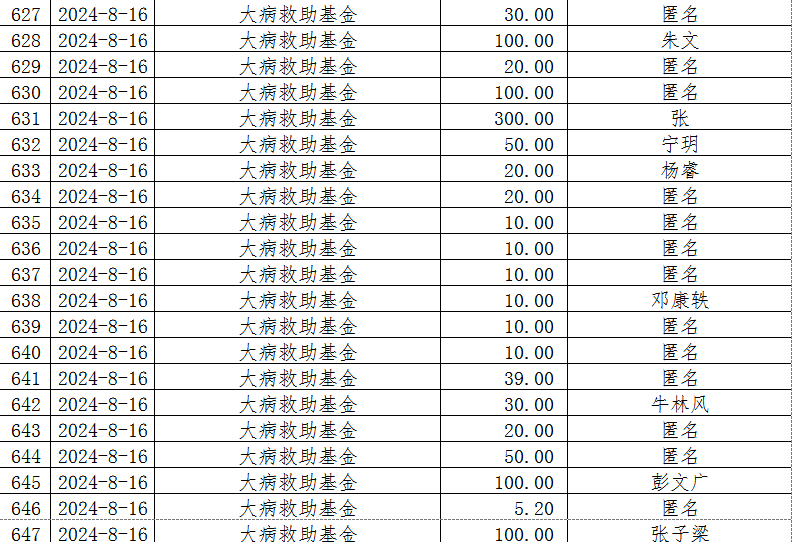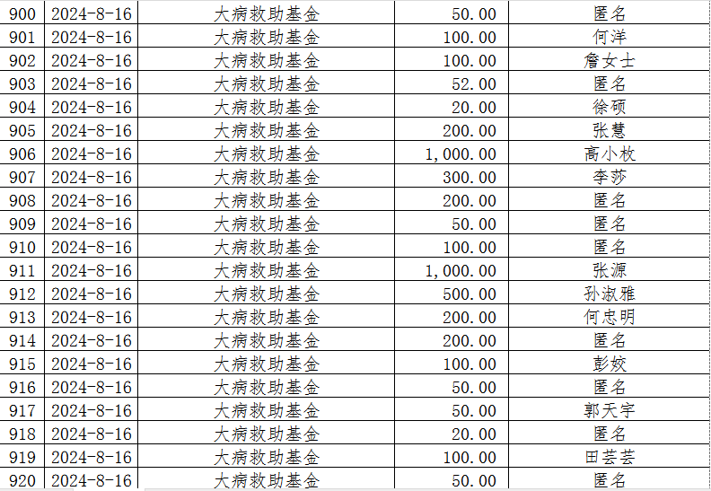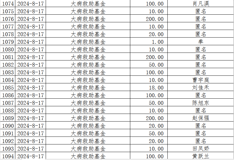 湖南省LETOU体育平台教育基金会2024年8月捐赠收入表