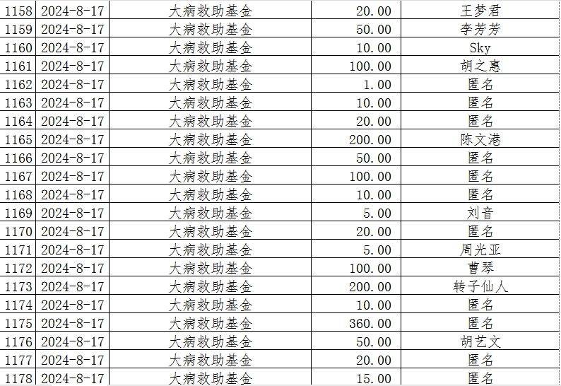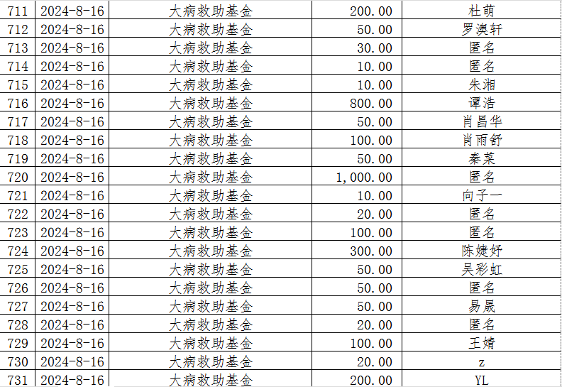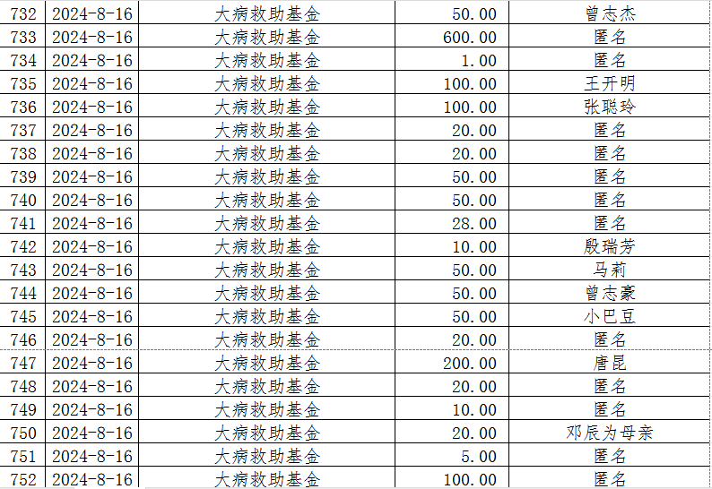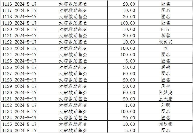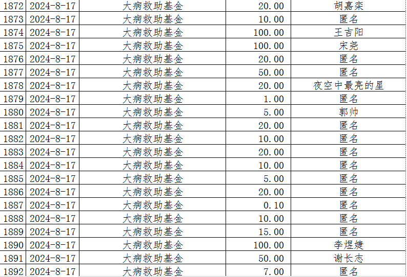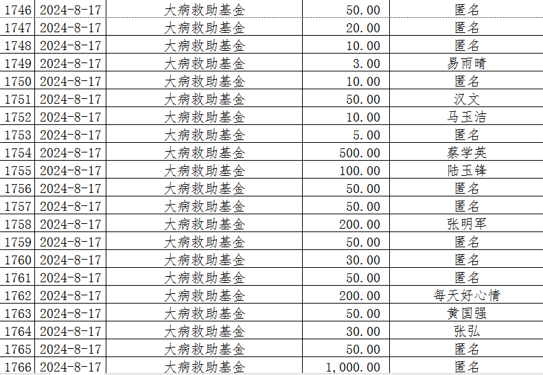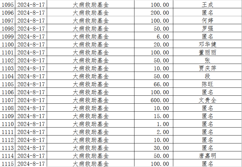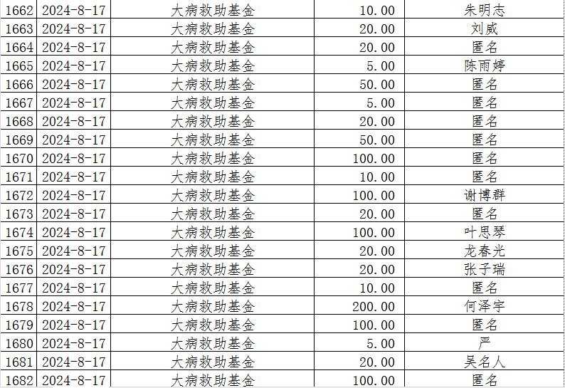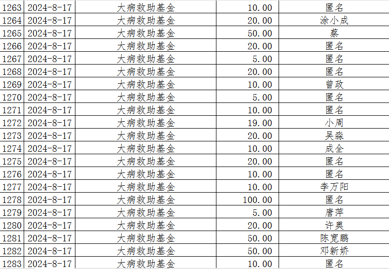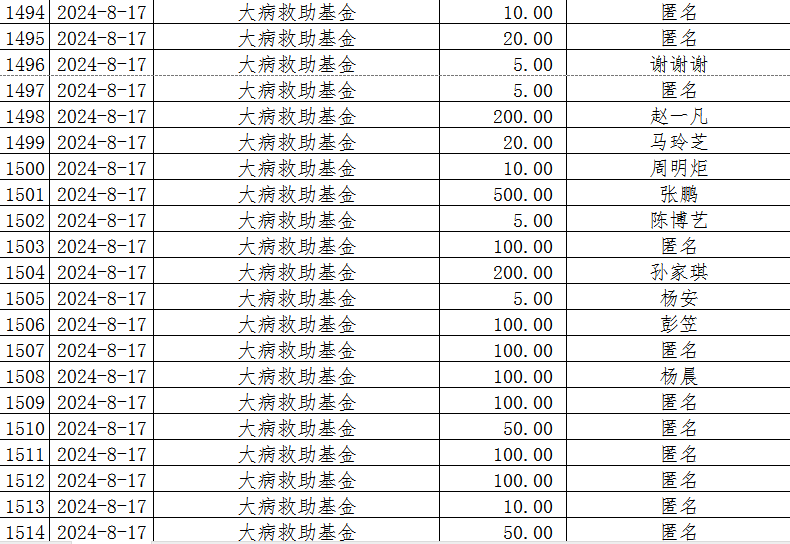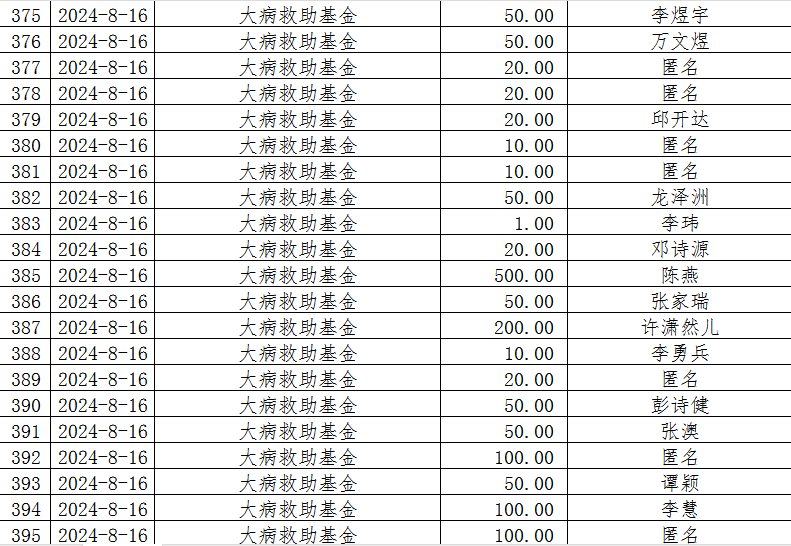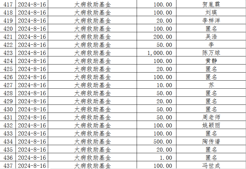 湖南省LETOU体育平台教育基金会2024年8月捐赠收入表