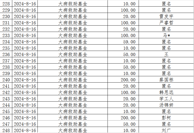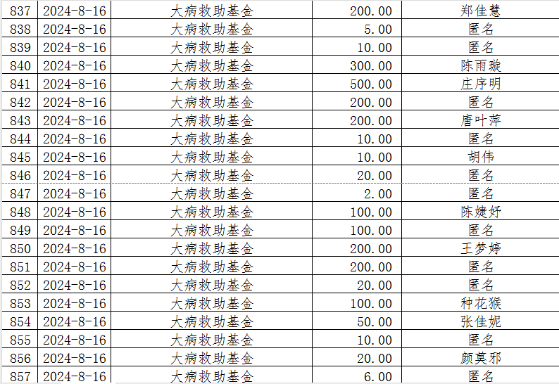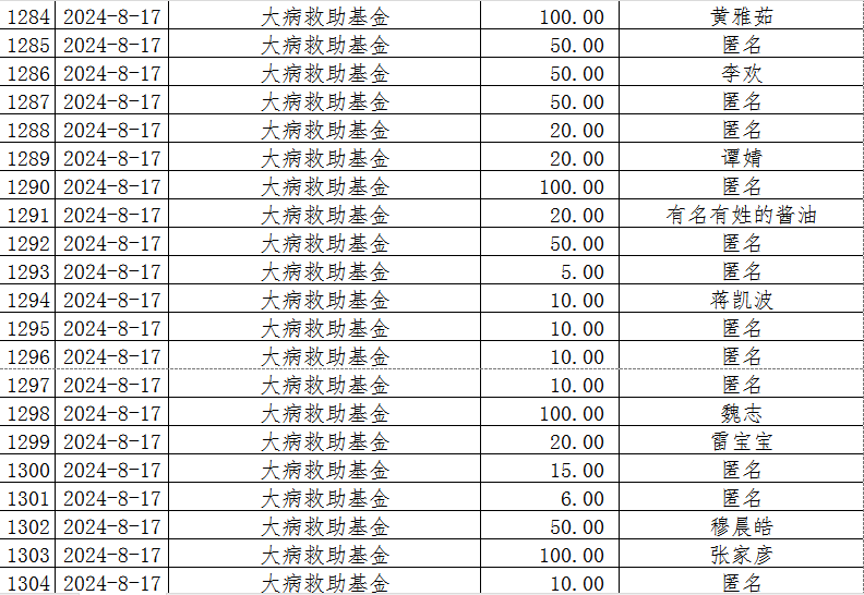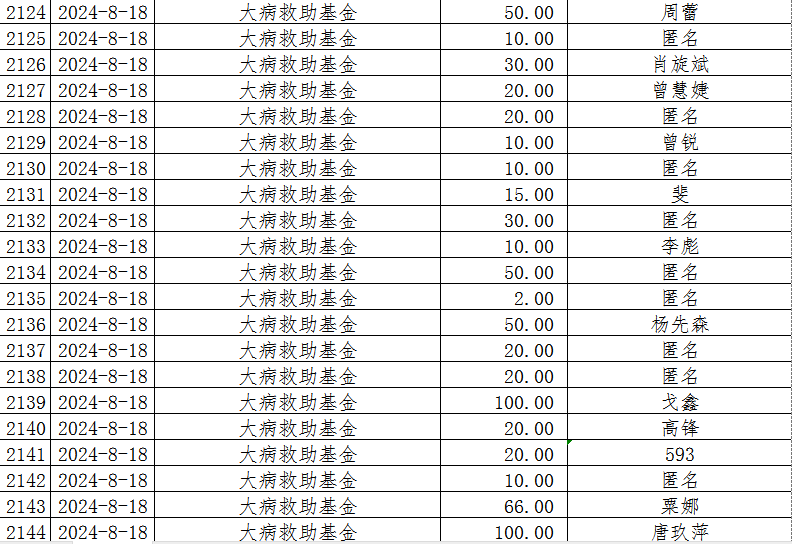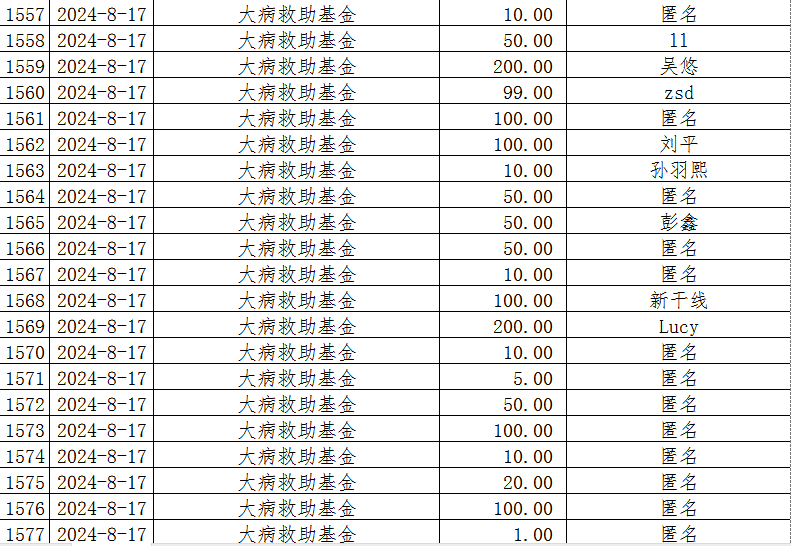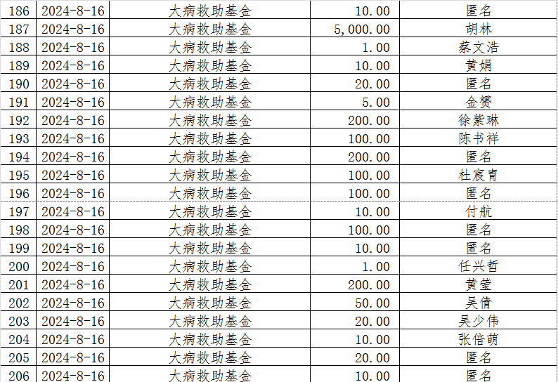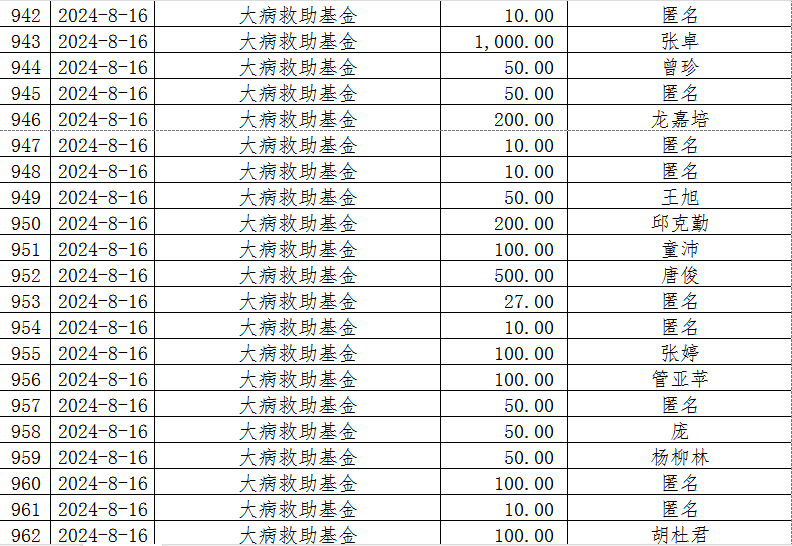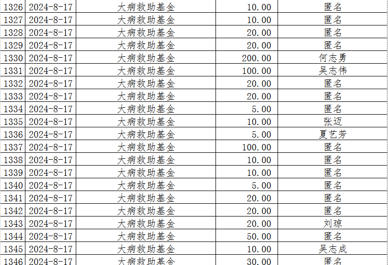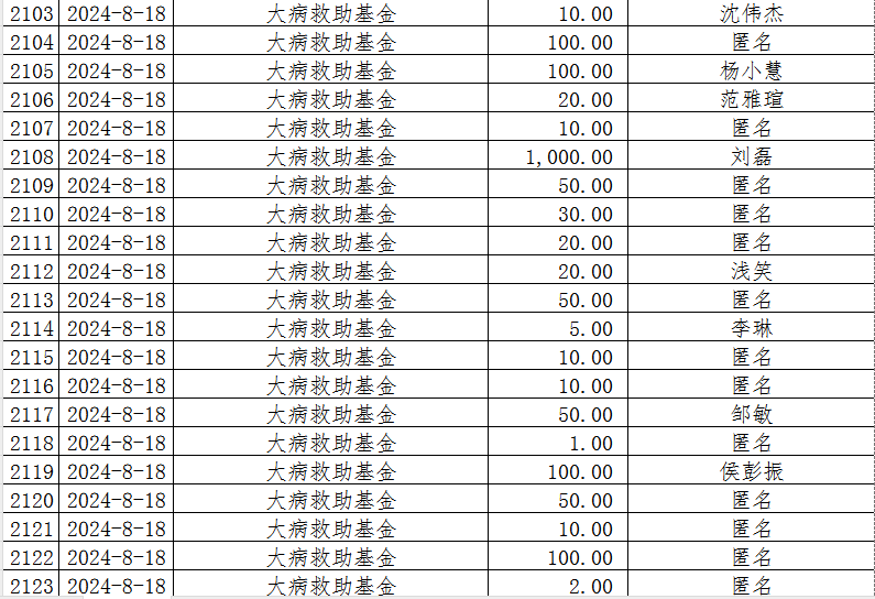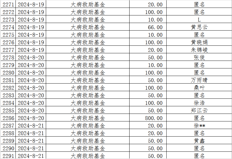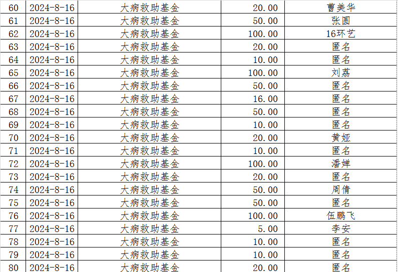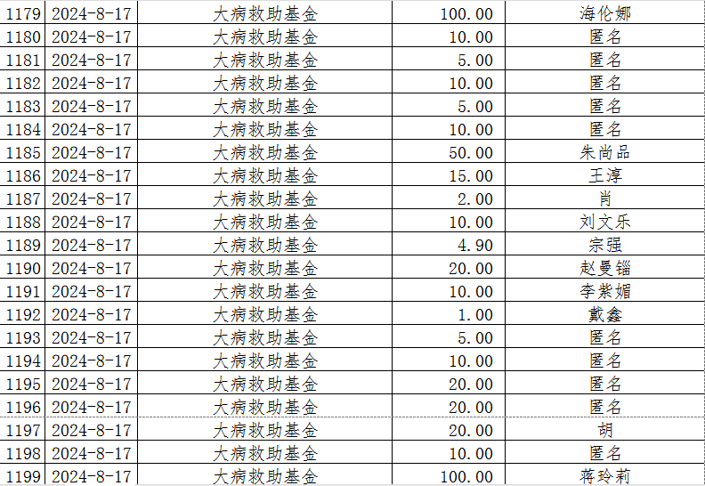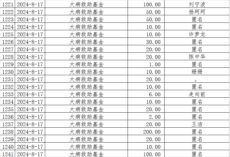 湖南省LETOU体育平台教育基金会2024年8月捐赠收入表