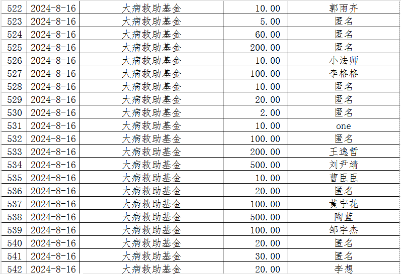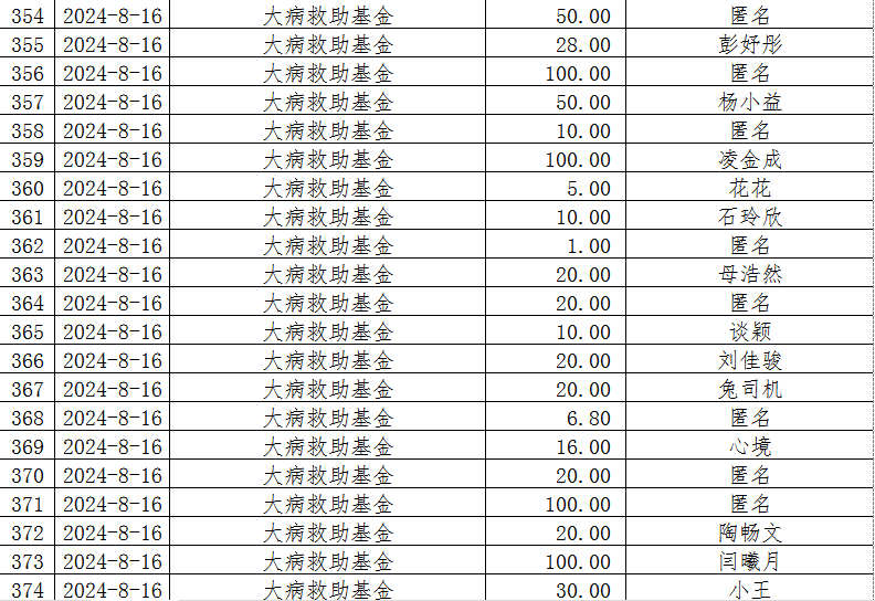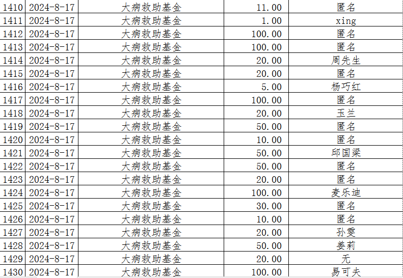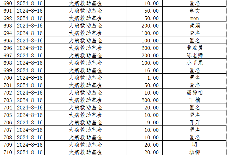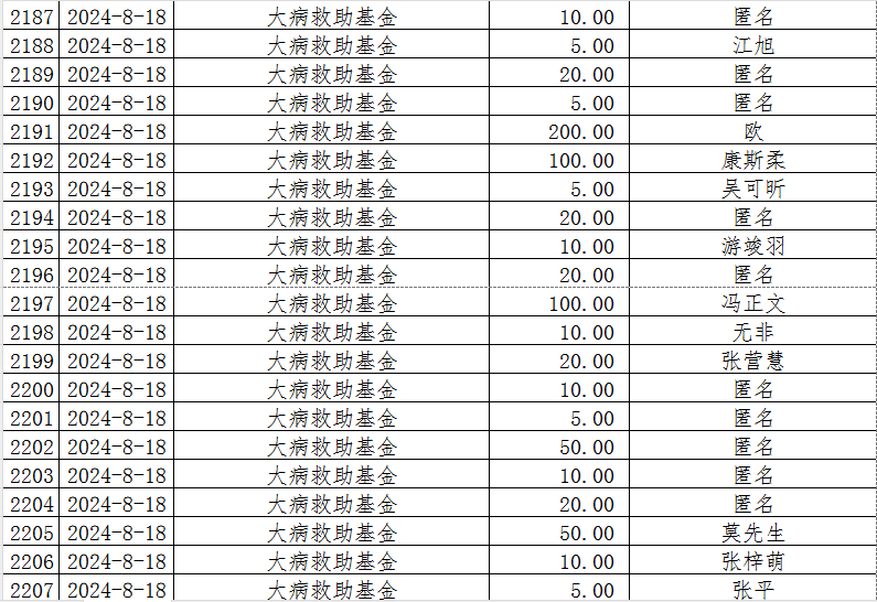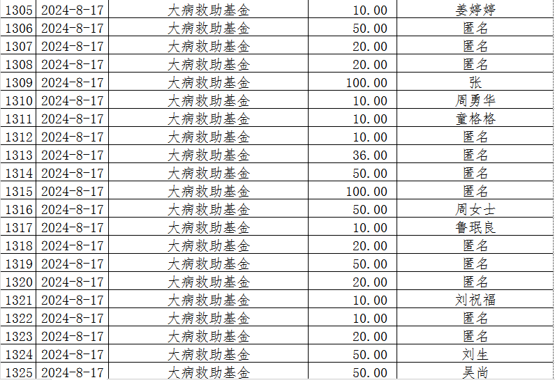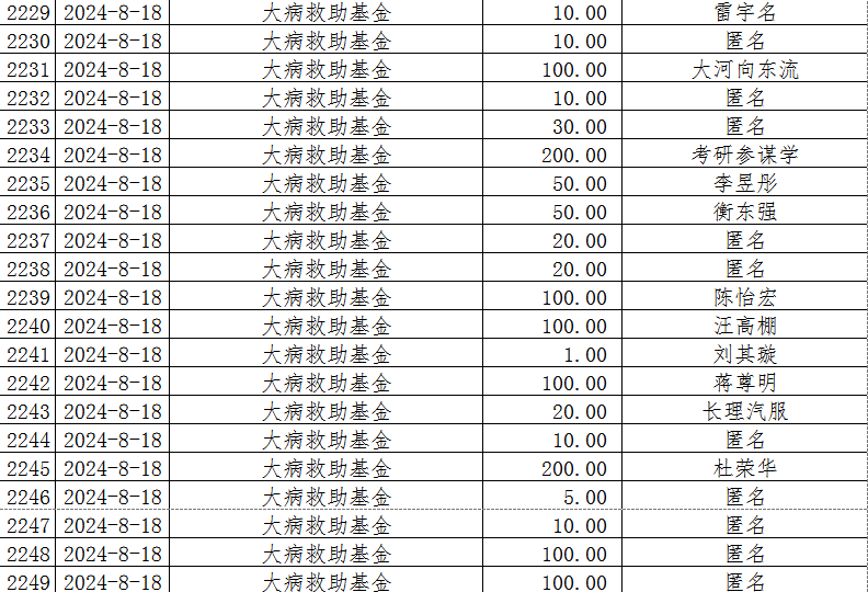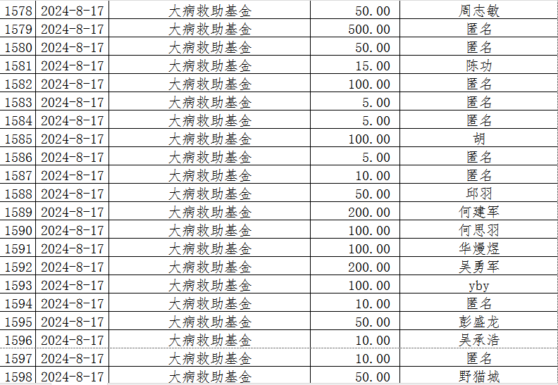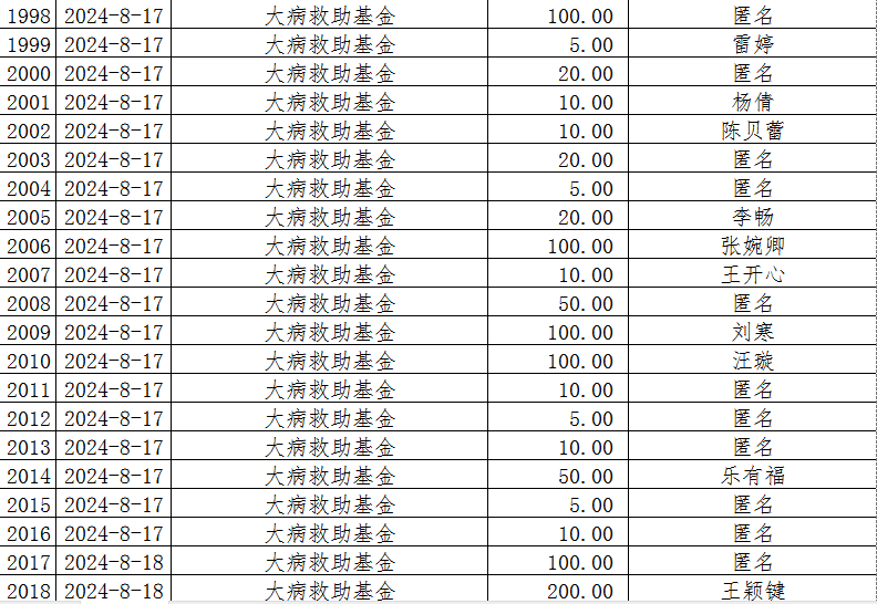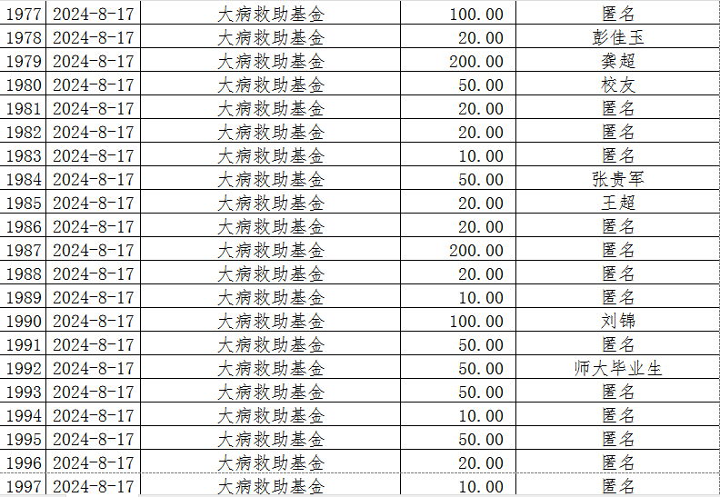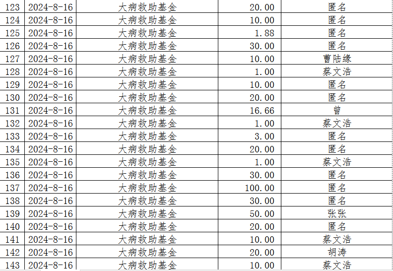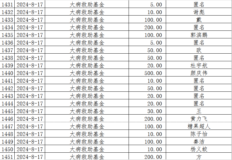 湖南省LETOU体育平台教育基金会2024年8月捐赠收入表