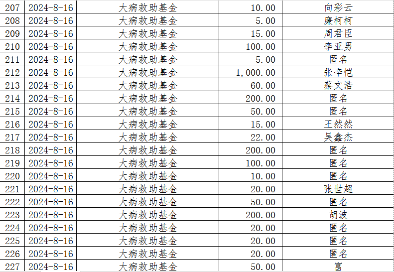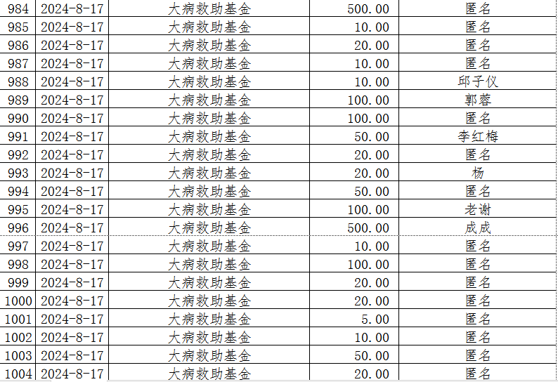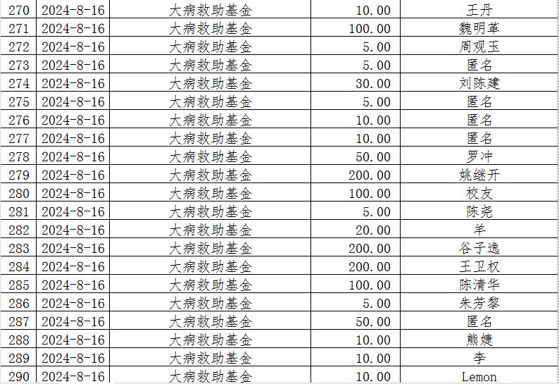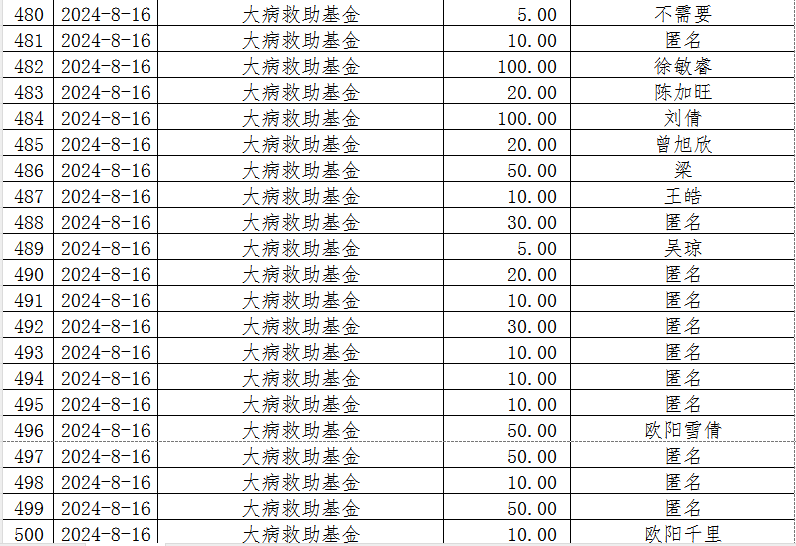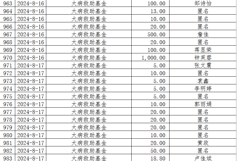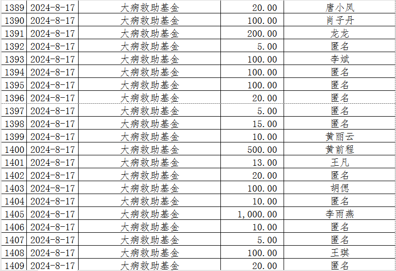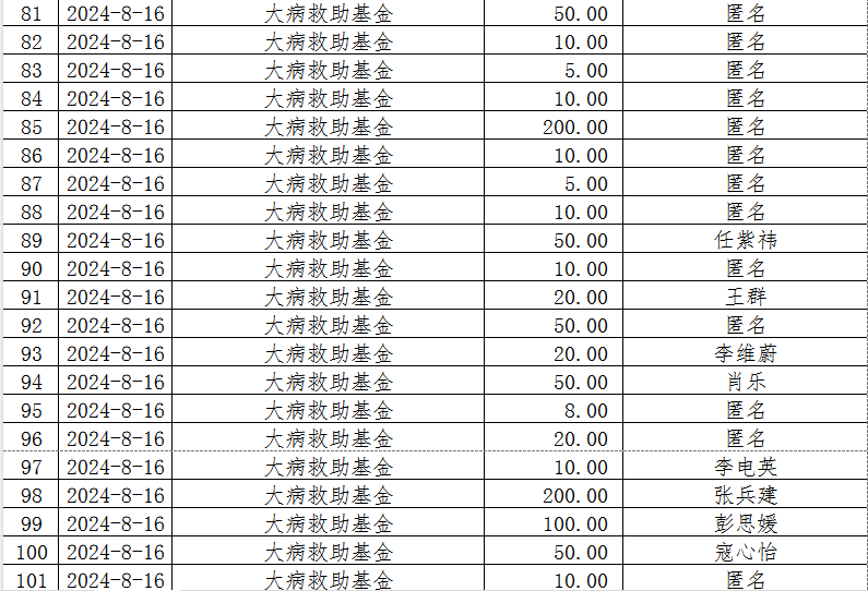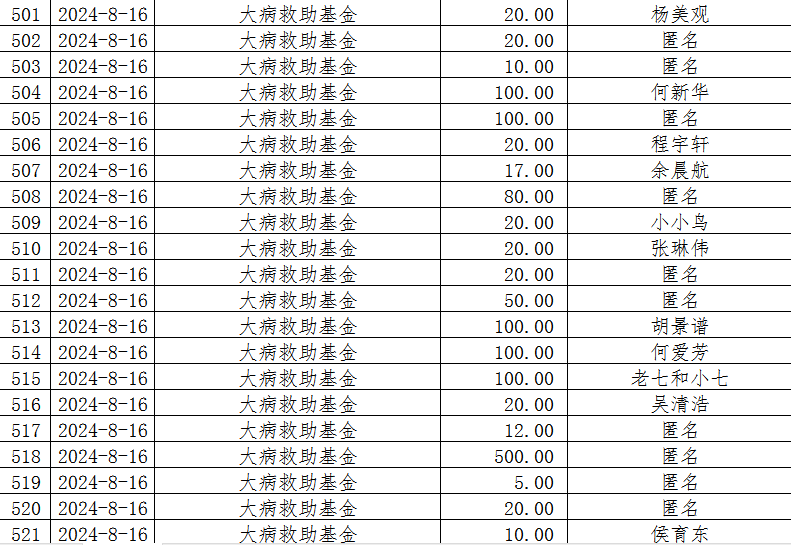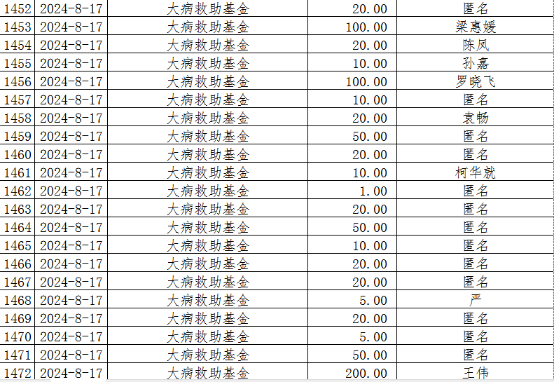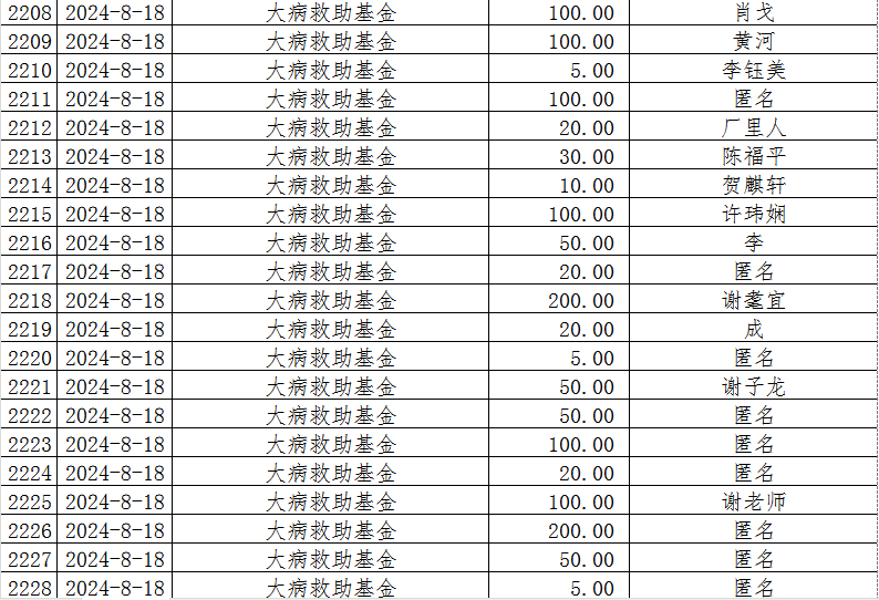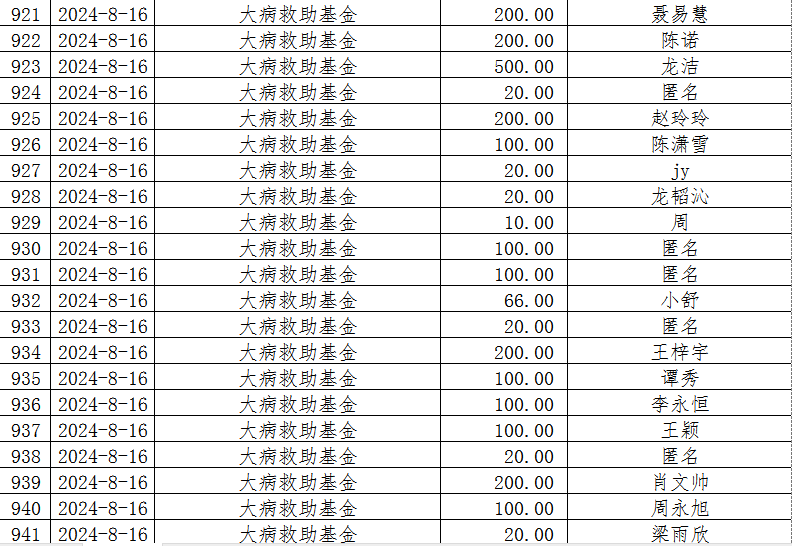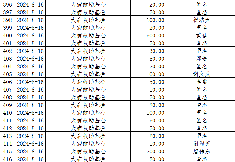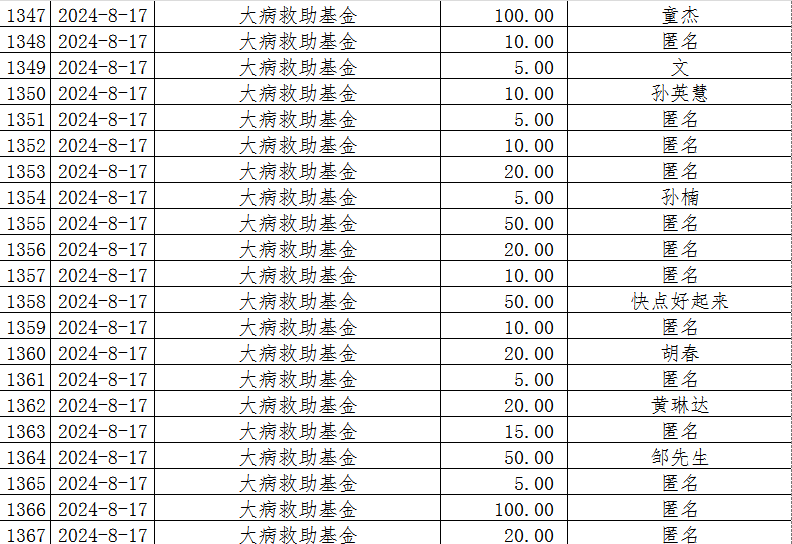 湖南省LETOU体育平台教育基金会2024年8月捐赠收入表