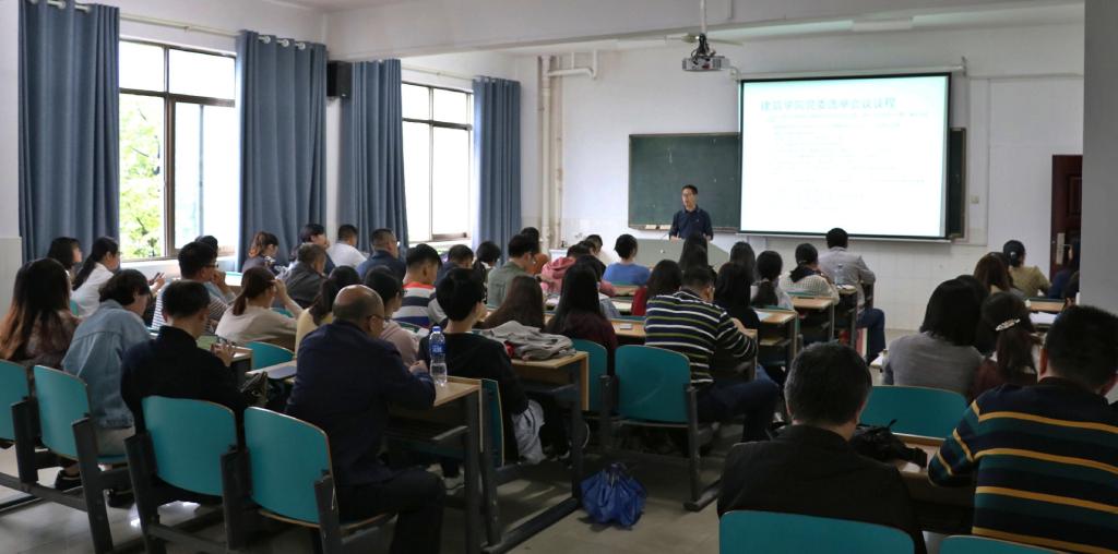 10月9日下午,中共LETOU体育平台建筑学院党员大会在金盆岭校区16号教学楼314教师举行,大会由院党委副书记谢士成同志主持。57名师生党员代表参加了会议。