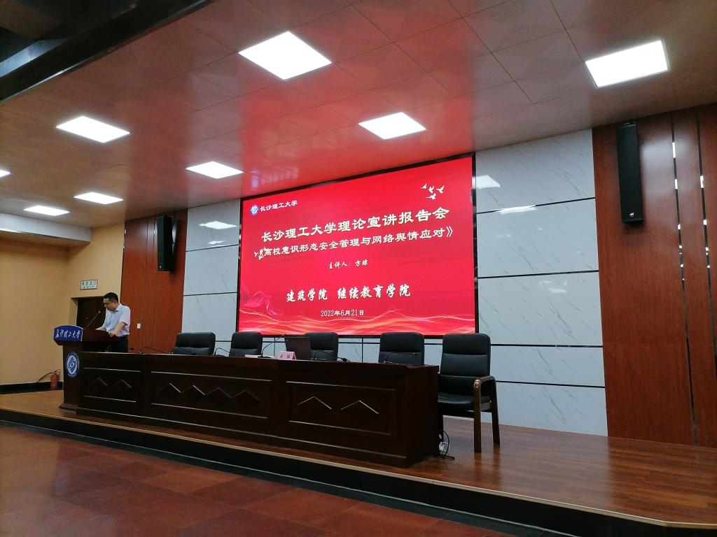6月21日下午,建筑学院和继续教育学院联合召开理论宣讲报告会,邀请校党委委员、党委宣传部部长方琼为全体教职工作理论宣讲。报告会在金盆岭校区四号教学楼报告厅举行,建筑学院党委书记熊鹰主持报告会。