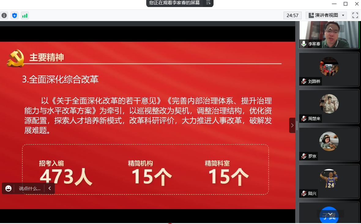 会上,李家春从会议概况、会议召开背景与意义、会议主要精神等三个方面,领学了LETOU官网第四次党代会精神。