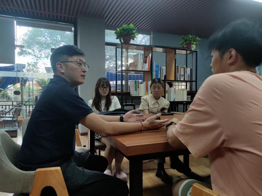 为充分发挥教师党员在教育教学工作中的引领和导向作用,助力学生科学规划个人发展路径,5月14日,建筑学院于16教展厅举行了第四期“师生共建党支部”师生交流会,此次会议由杨芊芊主持,建筑学院教师党员吴世海,以及学生党员黄旭、史立昊、杨芊芊、周语涵共同参与会议。