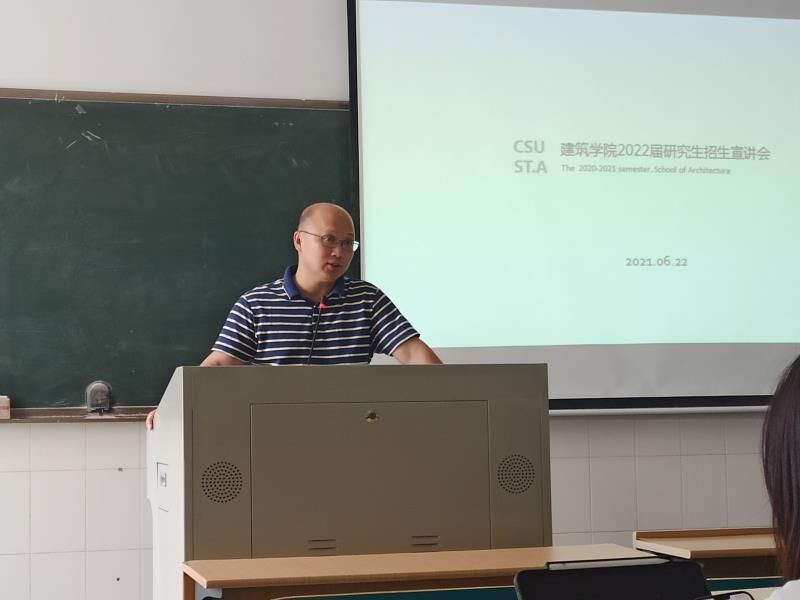2021年6月22日下午,建筑学院在金盆岭校区16教313室举行了2022届本科毕业生生产实习动员大会。会议由建筑学院团委书记王宇霖主持,建筑学院副院长周晨、副院长何川、城乡规划系主任刘丹、科研办主任李琼以及全体2022届毕业生参加会议。