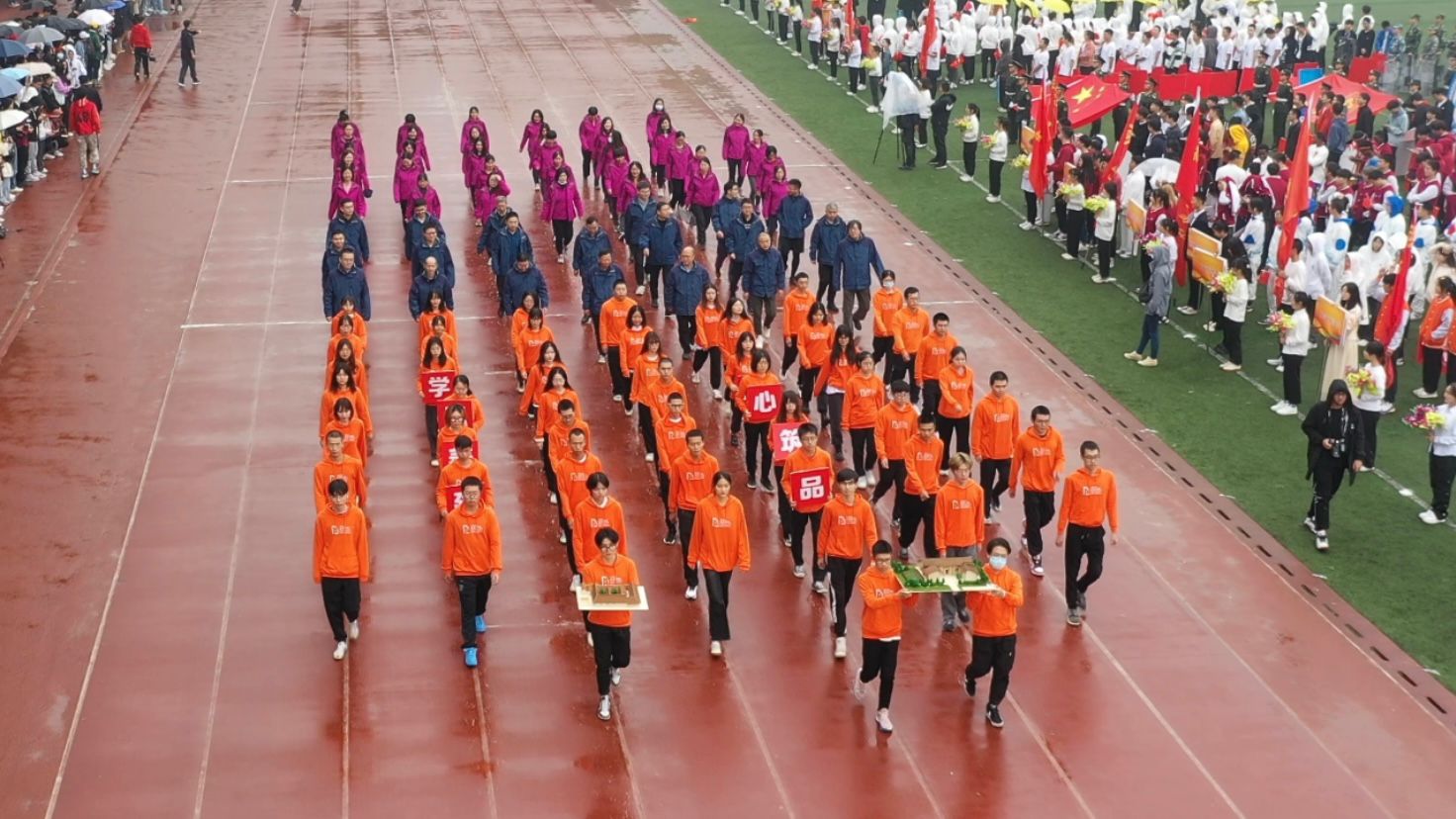 开幕式上,建筑学院方阵中,我院师生手捧红色建筑模型,高喊“学思善建,匠心筑品”的口号,以饱满的精神面貌接受全校师生的检阅。比赛场上,建院师生全力以赴,用汗水与热情书写着建院不断进取的青春华章。