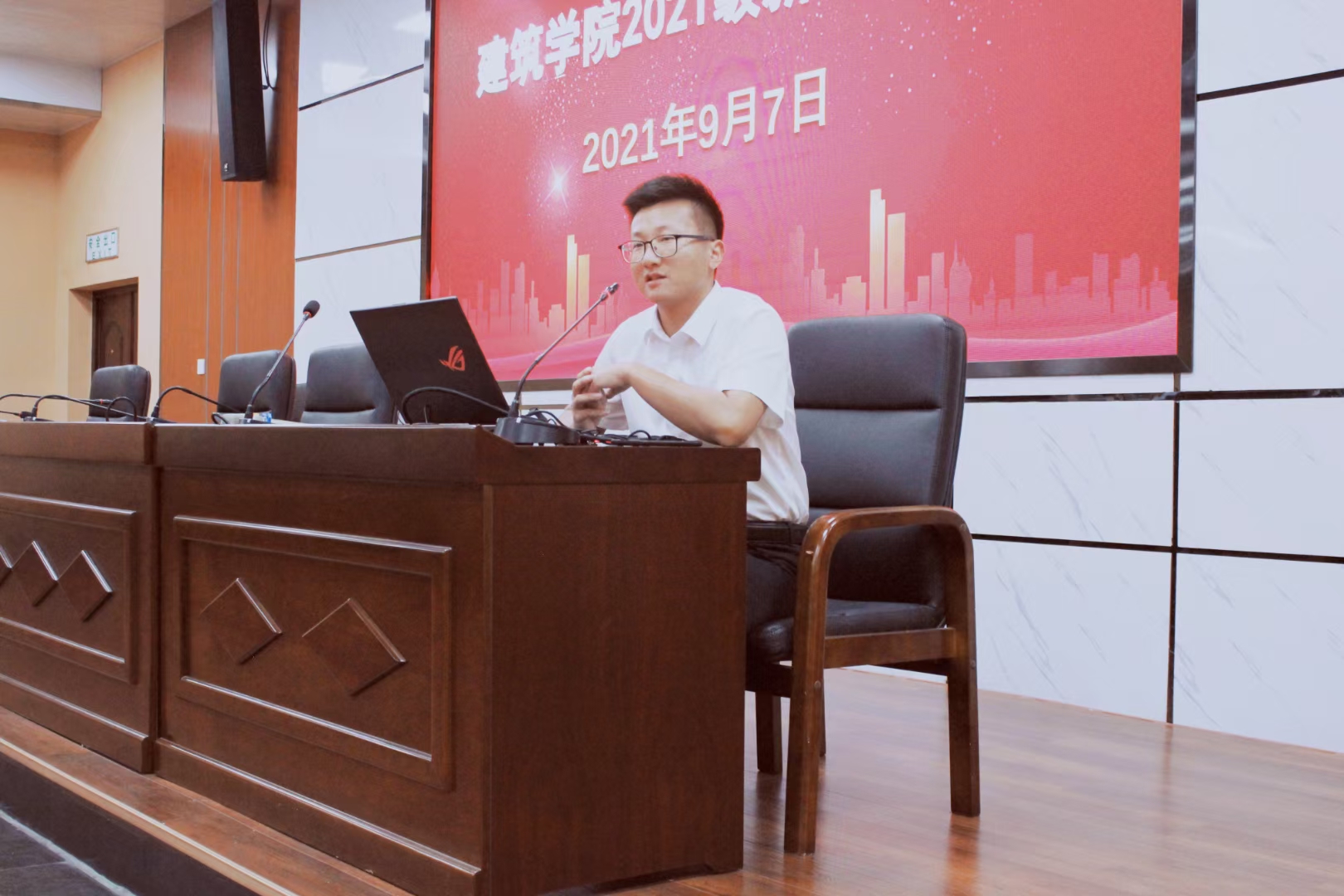 9月7日下午,建筑学院于4教报告厅组织召开了2021级新生“心理适应”年级大会,学工办主任周芳、新生辅导员郭恒共同参会。