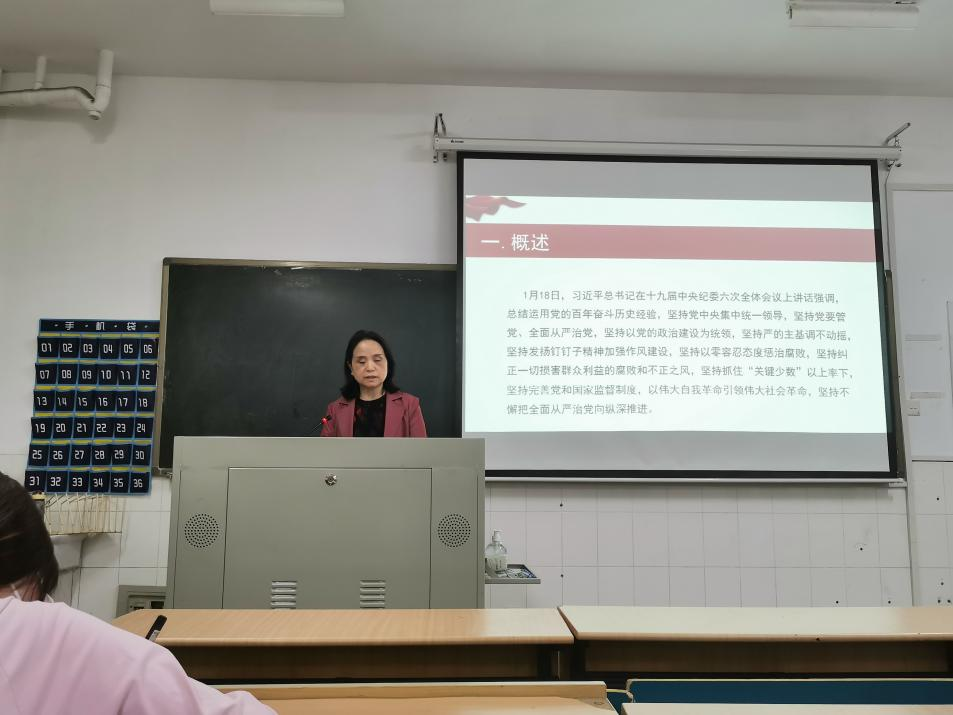 胡秀英老师带领大家回顾党的纪律建设史,由中外党政兴衰的经验与教训阐明党有严明的纪律、规矩,有远大理想信念,形成了伟大建党精神。胡秀英老师着重从政治纪律、组织纪律、廉洁纪律、群众纪律、工作纪律和生活纪律六个方面,结合现实违法违纪党员的反面案例,强调了党的规矩是党的各级组织和全体党员必须遵守的行为规范和规则,全面从严治党靠纪律建设,组织严密、纪律严明是党的优良传统。随后胡秀英老师详细说明了党的纪律处分、坚持的原则以及纪律建设的主要做法,要求发展对象将党的纪律要求牢记于心,在日常学习生活工作中以严格的标准要求自己,严格遵守党的纪律。
