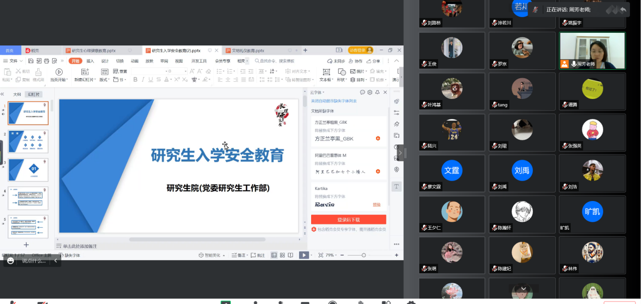 2022年8月29日下午14:30,建筑学院召开研究生安全教育及心理健康教育专题学习线上会议,学工办周芳老师主持会议,2022级全体研究生新生参会。