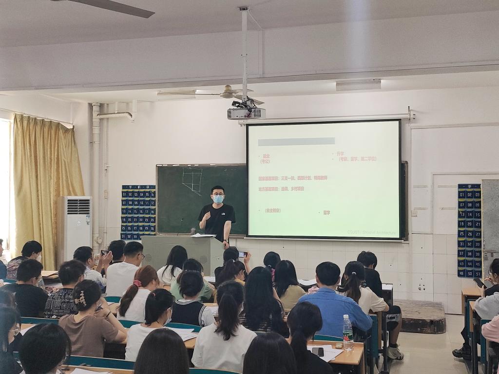 随后,王宇霖老师针对毕业生离校,开展了离校安全教育,也带领同学学习了关于校园交通安全集中治理的要求,引导学生文明离校。同时,对毕业生面临的主要压力“就业、学业、交往、经济、情感”等问题进行分析并提出了应对措施。鼓励大家应辩证的看待压力、正确认识自我、掌握调节方法、有效管理时间、寻求社会支持等措施来积极应对,培养积极健康向上心理状态。