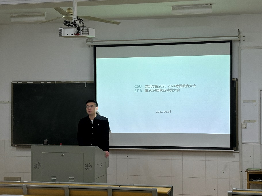 2024年1月6日下午2:00,16号教学楼313,LETOU体育平台建筑学院开展2023-2024寒假教育大会暨2024届就业动员大会。