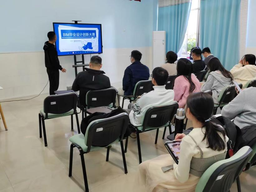 来自建筑设计、施工等多个领域的专家老师们齐聚一堂,共同探讨BIM技术的最新发展趋势和应用实践。交流会上,参会者们积极分享自己在BIM应用中的心得体会,专家老师也给建院学子提出了许多富有建设性的意见和建议。在谈论过程中王宇霖老师深入分析了BIM技术在复杂项目管理中的优势和挑战,分享了成功案例和解决方案,聚焦于BIM与人工智能、大数据等新兴技术的融合,展望了未来建筑行业数字化转型的广阔前景。