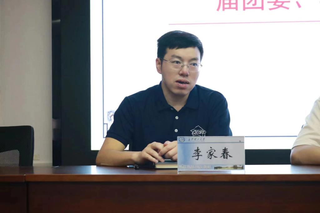会议议程第一项,团委书记杨斯嘉首先从部门职能、分工等几个方面对第八届团委、学生会各成员提出了期望与要求,希望大家能加强部门建设,提高相关专业能力,明确部门内部各成员的工作与职责,共同努力促进建筑学院团学发展。会议议程第二项,第八届团委、学生会主席团成员霍申峰、杨城鑫、李奕璇、刘勋、肖汉权依次上台发表任职讲话,对同学们的信任表示感谢并对未来各部门的发展提出了展望。会议议程第三项,由团委副书记霍申峰宣布暑期培训相关安排,包括了2024级新生军训后勤相关工作,院学生会的招新工作、各部门新媒体人的培训与对接等。会议议程第四项,党委副书记李家春发表了讲话,明确了第八届团委、学生会工作的主要基调,强调学生干部要充分发挥好学院与学生间的桥梁作用以及学风建设上的表率作用,为学生成长成才,学院发展贡献自己的一份力量。
