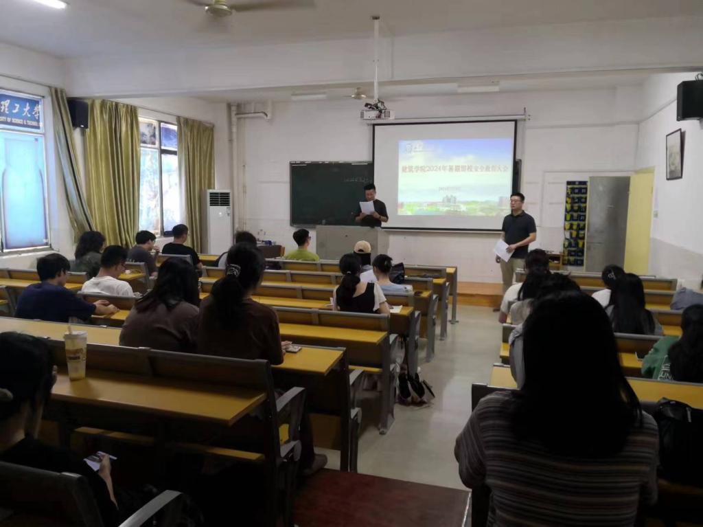 为切实保障我院暑假留校学生的人身和财产安全,2024年7月9日下午,学院在16教313召开2024年建筑学院暑期留校学生安全教育大会。党委副书记李家春、研究生辅导员王宇霖、本科生辅导员郭恒及申请暑假留校的23名本科生、23名研究生到场参加,会议由本科生辅导员郭恒主持。